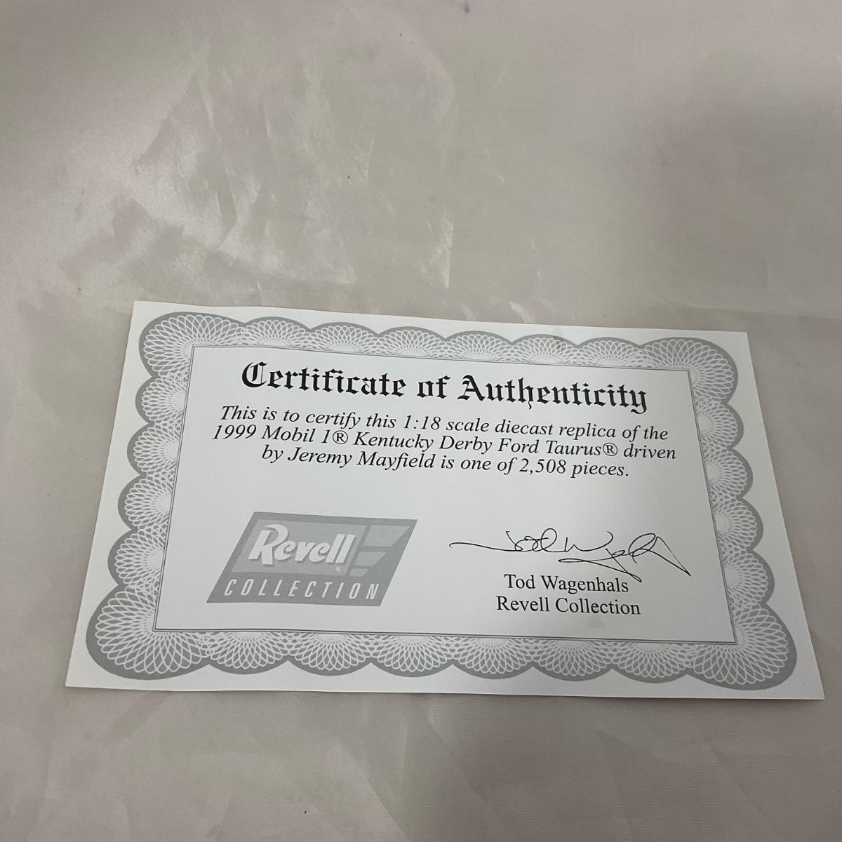 One NASCAR die cast 1:18 scale 1999 Mobil Kentucky Derby Ford Taurus figure. Comes with a Certificate of Authenticity. Please see photos for details and condition. ::: Shipping is available on this lot. If you require shipping you must let us know at the close of the auction. We will coordinate with you after the item has been won. Shipping fees will include insurance up to or exceeding the value of all items being mailed. If you have any questions regarding this lot please contact the auctioneer either via this website, by direct email or by phone. PICK UP TIMES and other important information can be found in the TERMS and DESCRIPTION of the auction. Please take a look for pertinent information. Thanks!