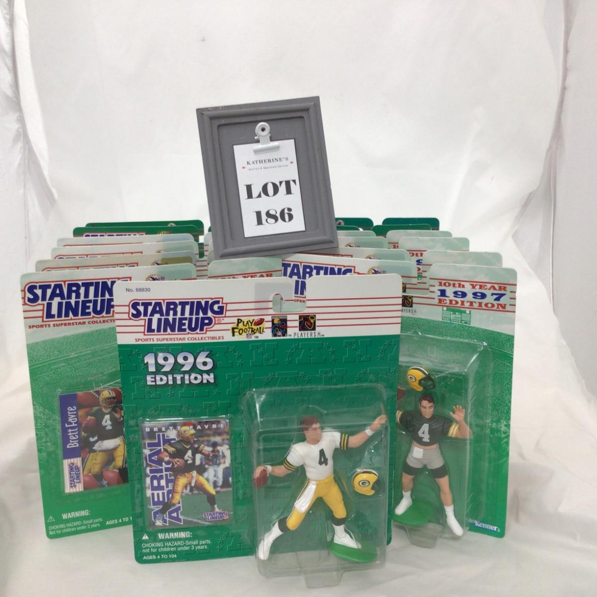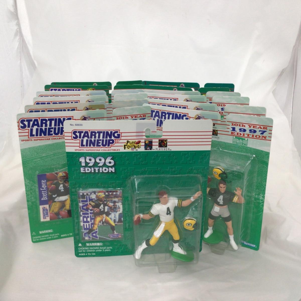 13 Brett Favre starting lineups figures there are duplicates. Please see photos for details and condition. ::: Shipping is available on this lot. If you require shipping you must let us know at the close of the auction. We will coordinate with you after the item has been won. Shipping fees will include insurance up to or exceeding the value of all items being mailed. If you have any questions regarding this lot please contact the auctioneer either via this website, by direct email or by phone. PICK UP TIMES and other important information can be found in the TERMS and DESCRIPTION of the auction. Please take a look for pertinent information. Thanks!