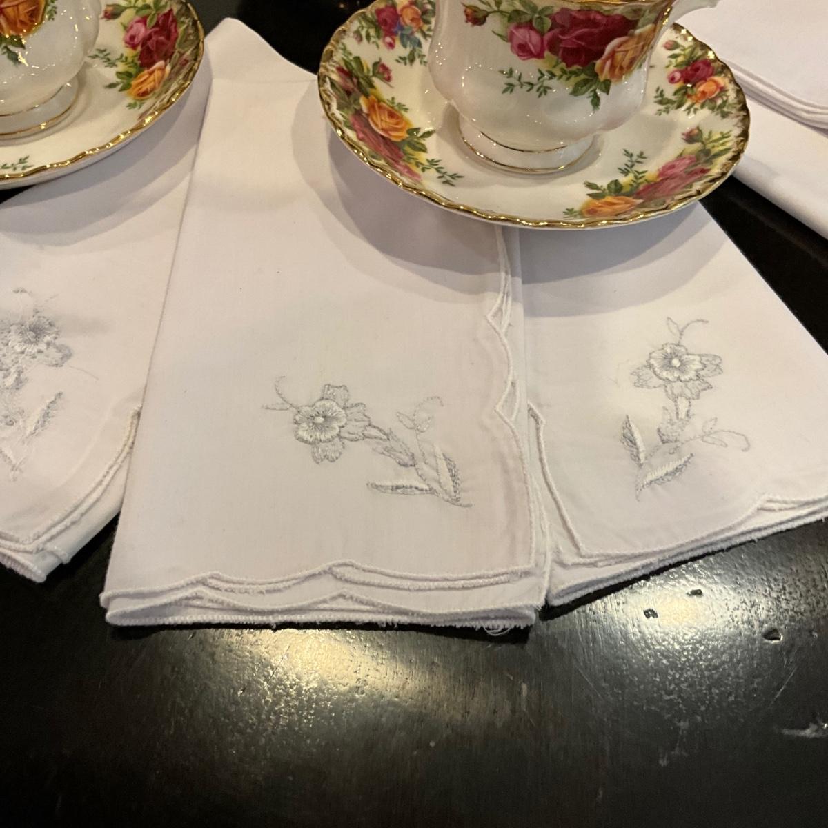 One round tray , one teapot, and 4 cups and saucers with napkins