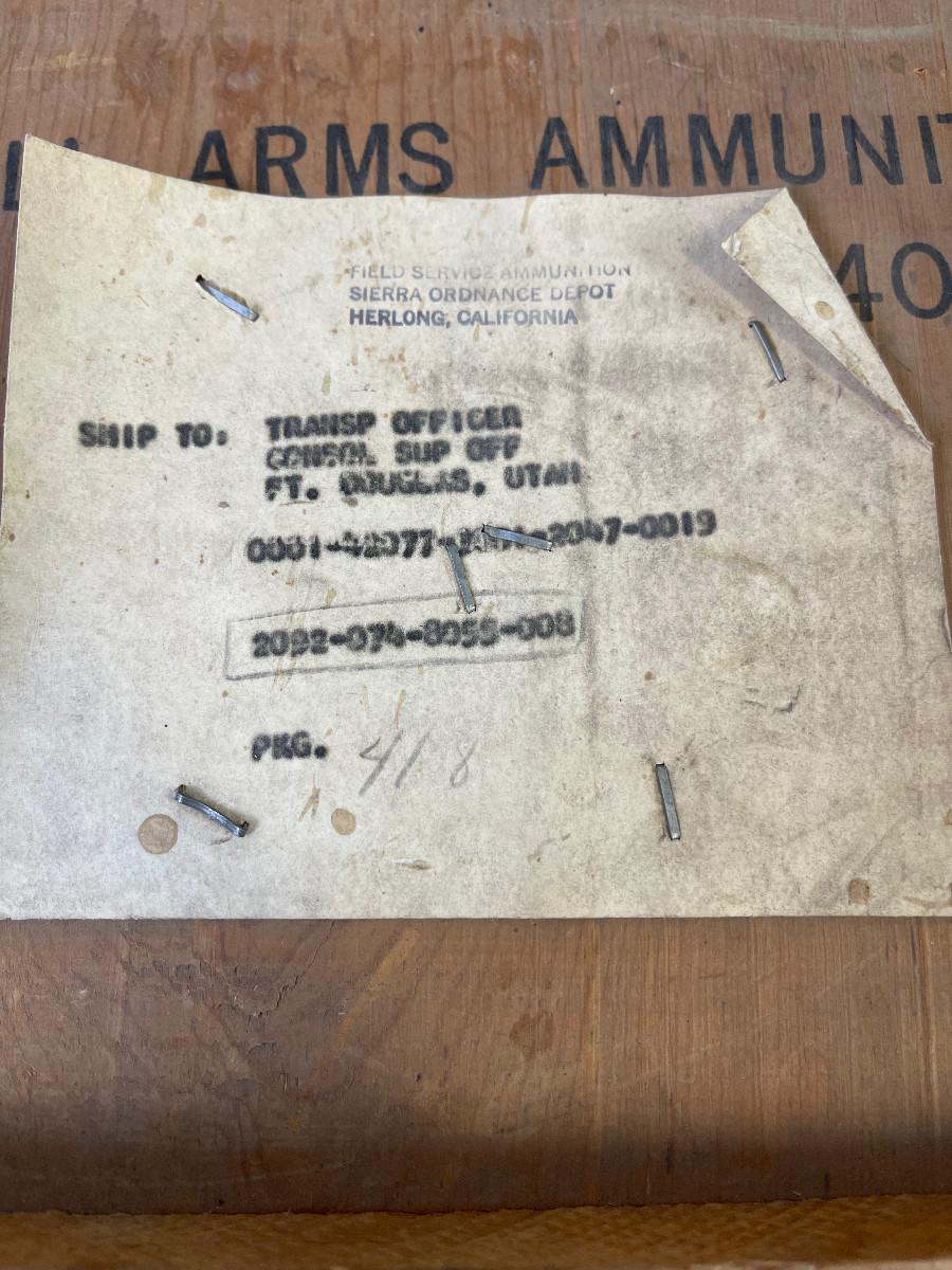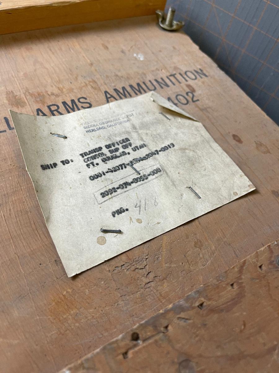 #186 Small Ammunition Crate - Fort Douglas Shipping Tag