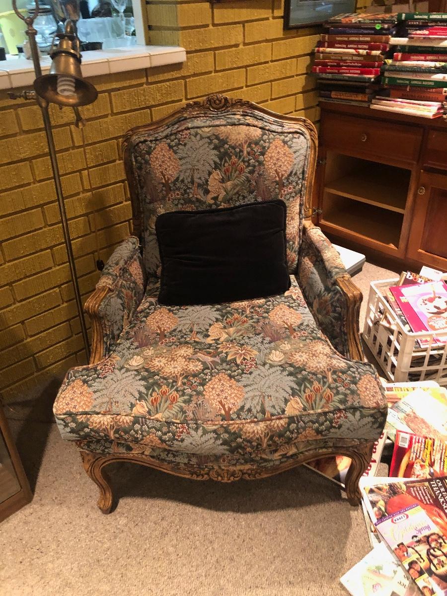 #186- Wood and fabric chair with Tuscan nature pattern