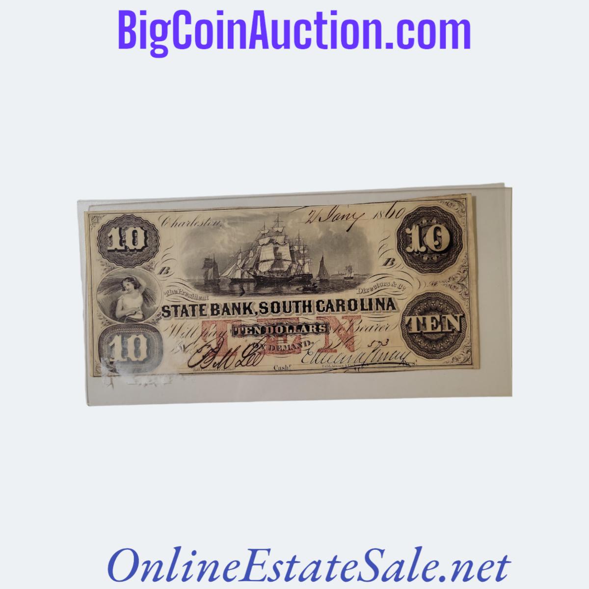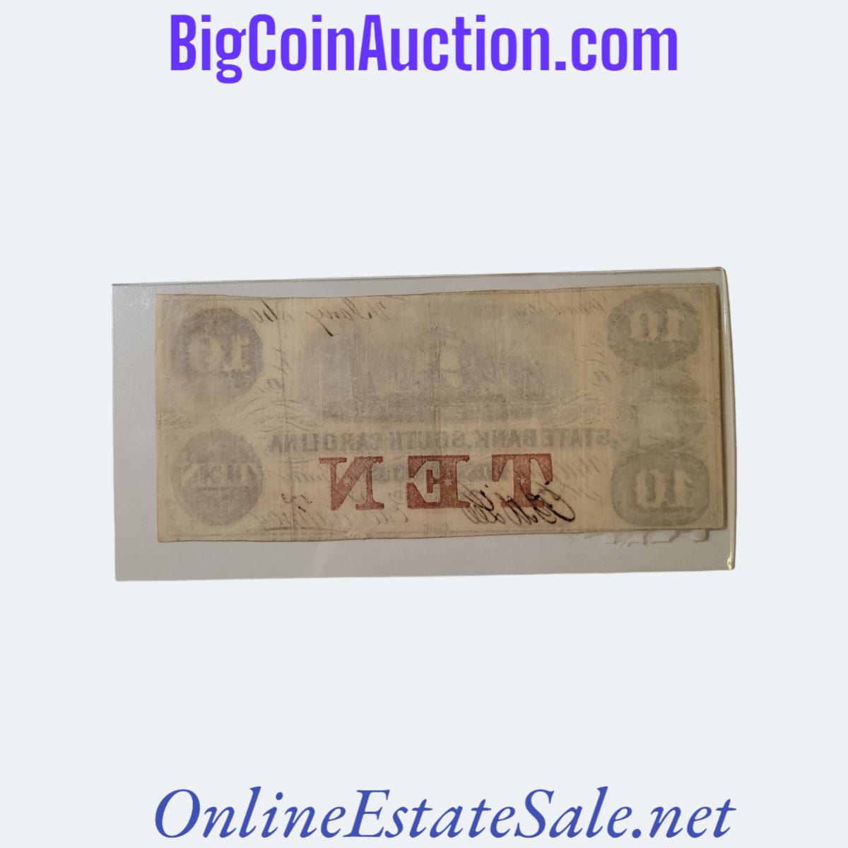 1860 STATE BANK SOUTH CAROLINA $10 NOTE