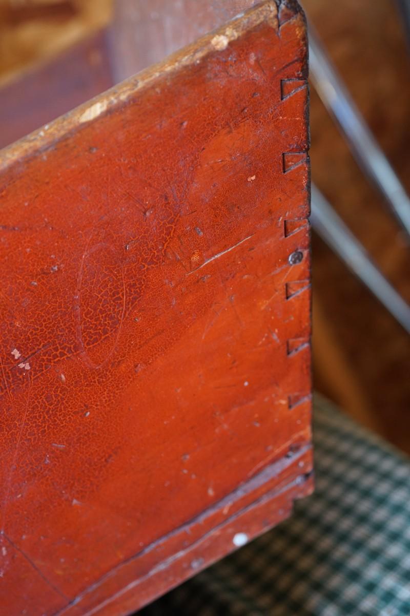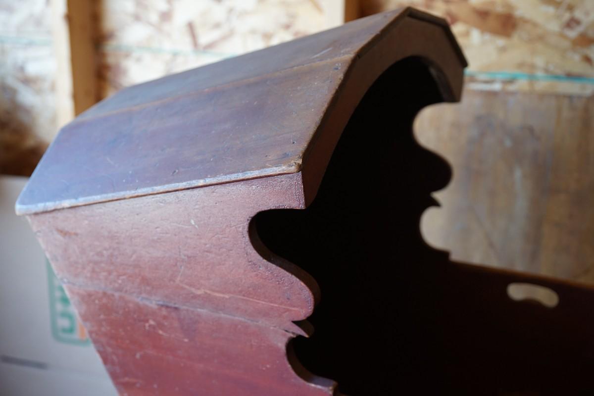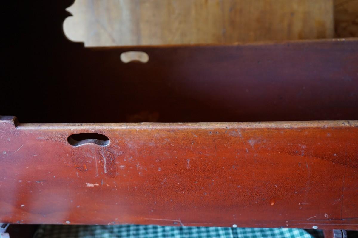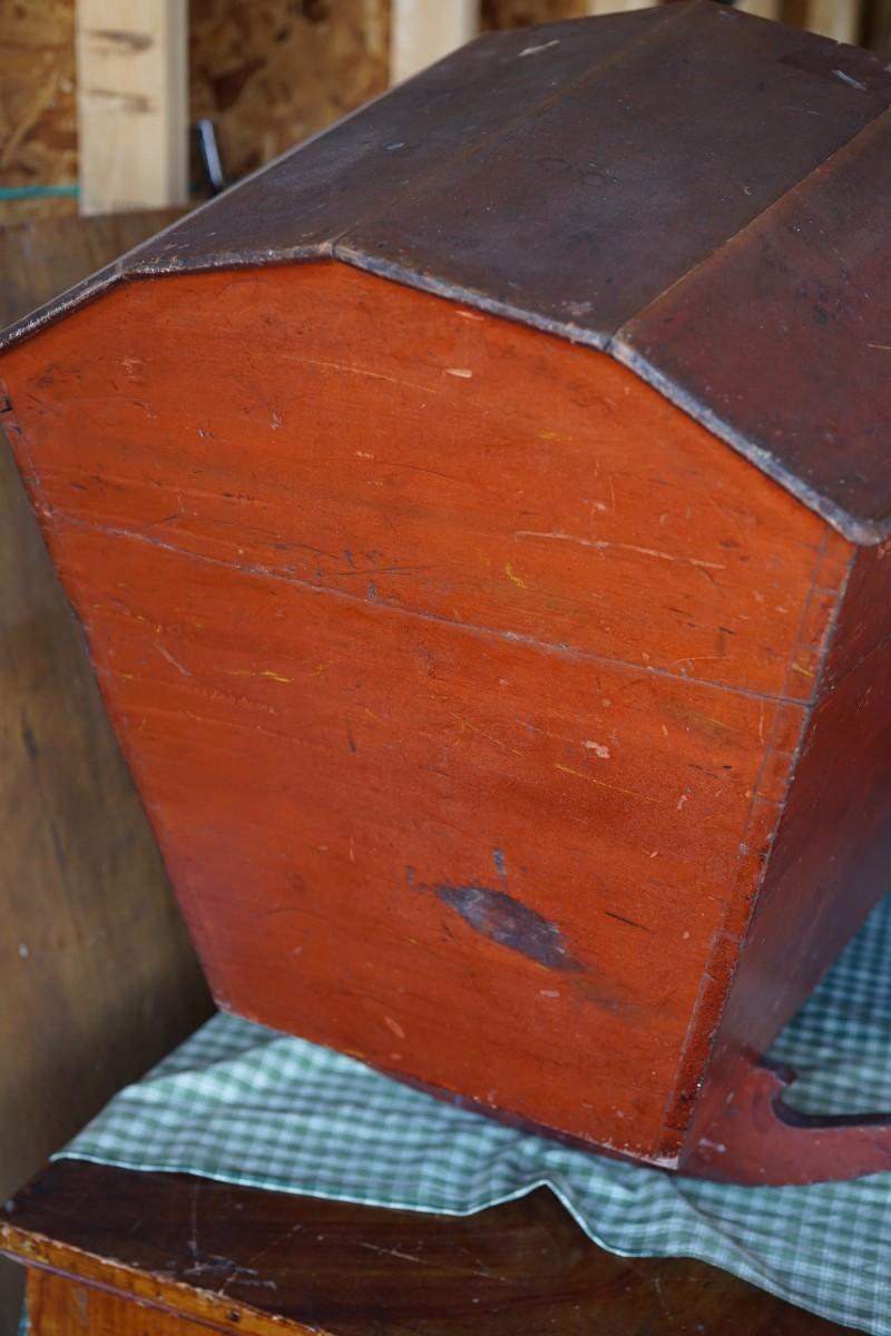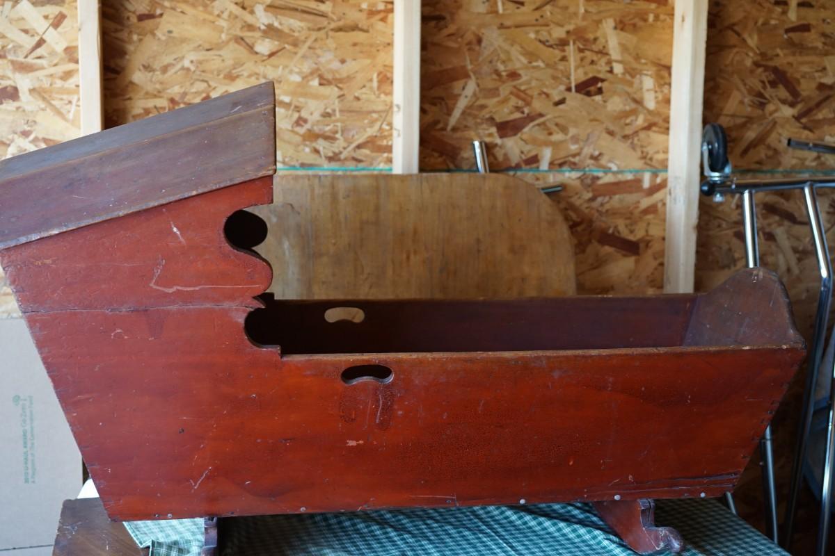1860'S WOOD HOODED CRADLE EARLY PAINT RED