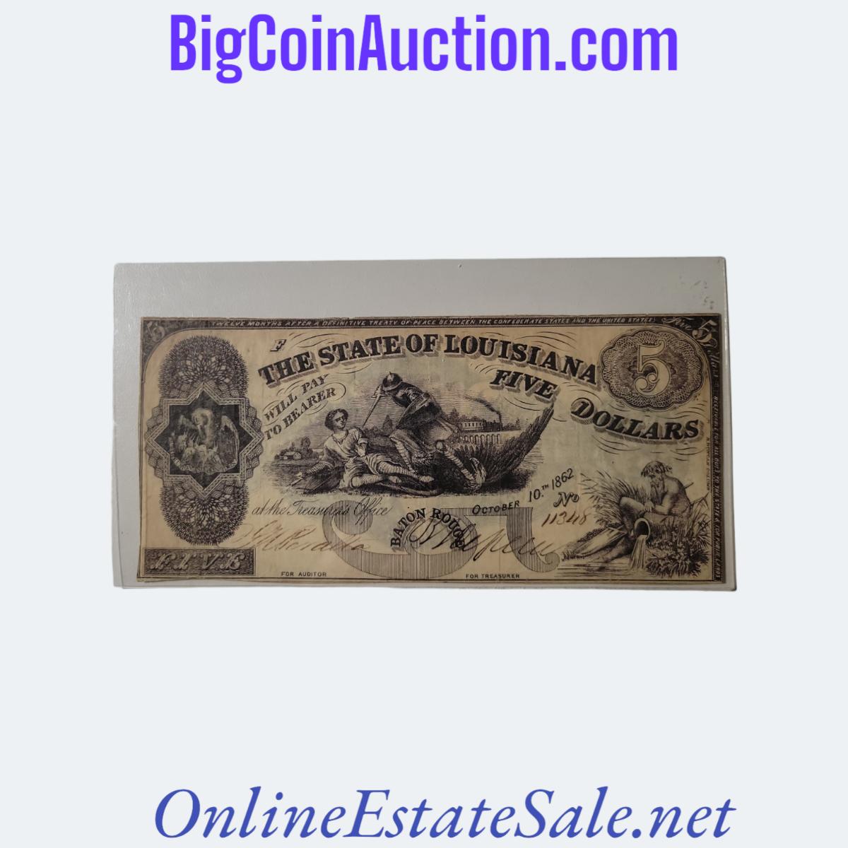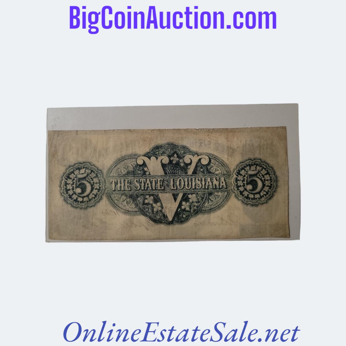 1862 STATE OF LOUISIANA FIVE DOLLARS NOTE