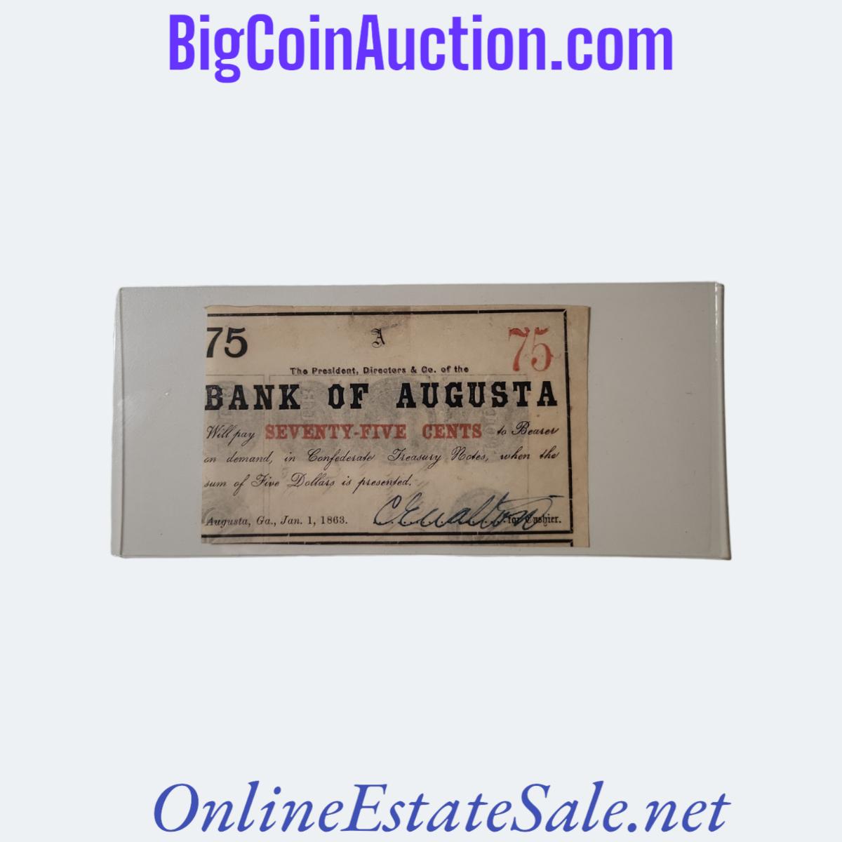 1863 BANK OF AUGUSTA 75 CENT NOTE