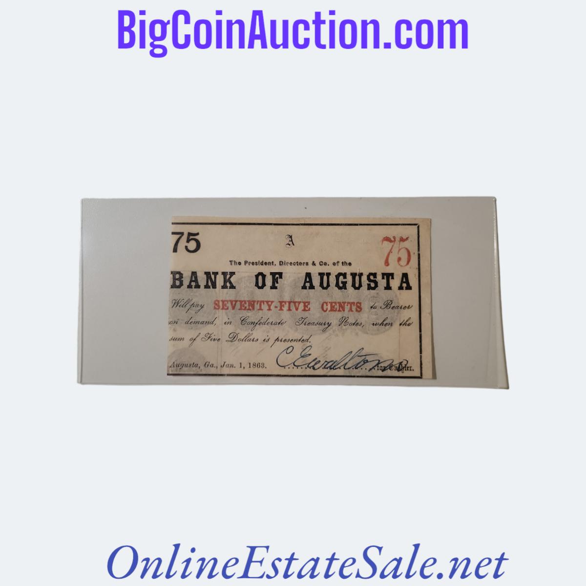 1863 BANK OF AUGUSTA 75 CENT NOTE