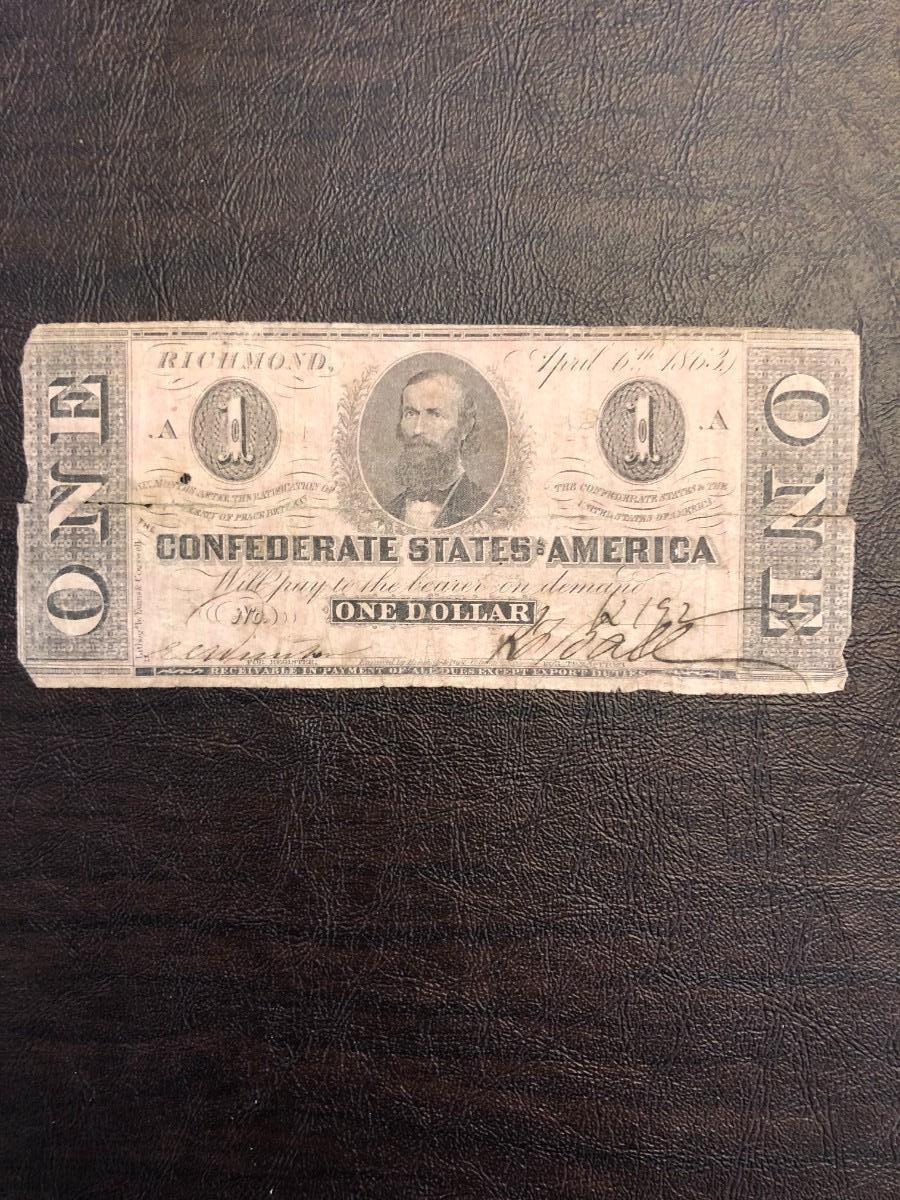 1863 CONFEDERATE STATES OF AMERICA $1 BILL
