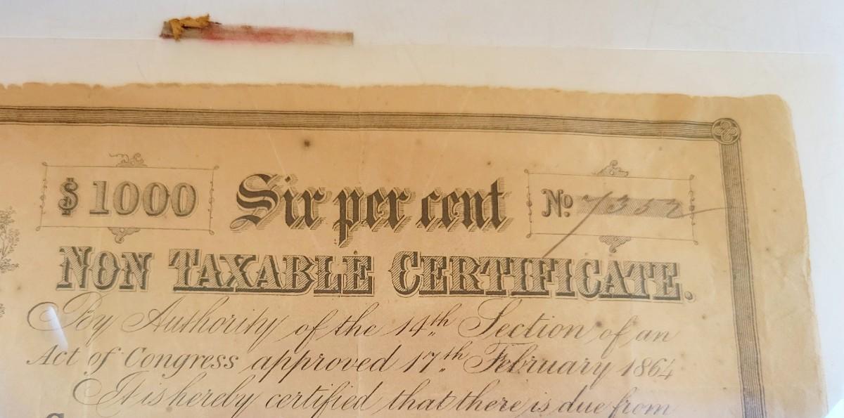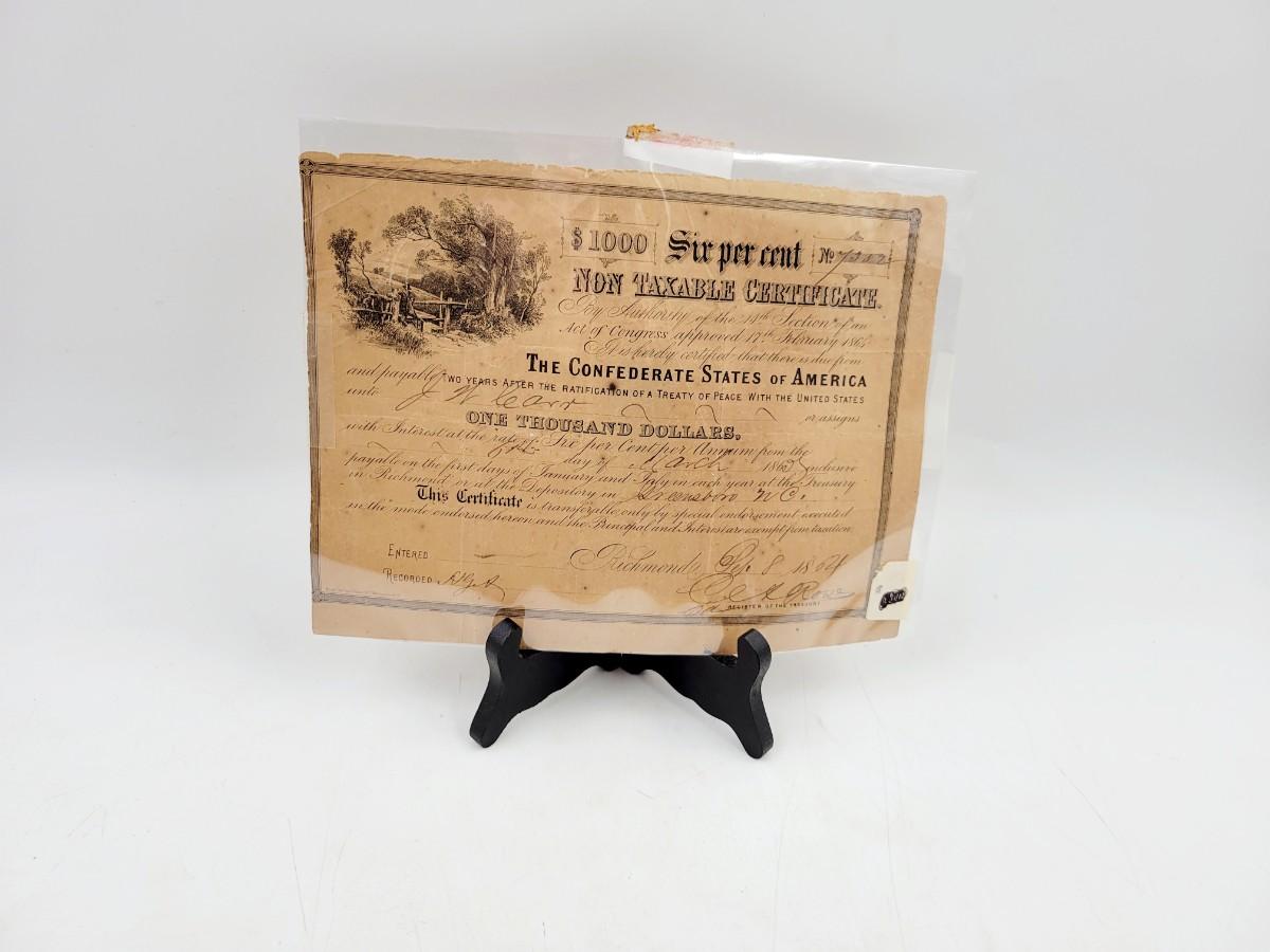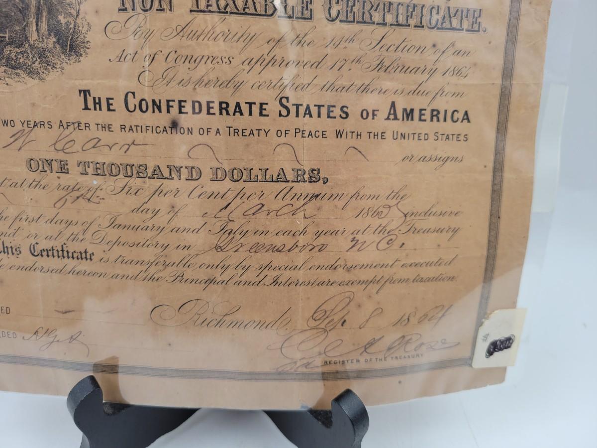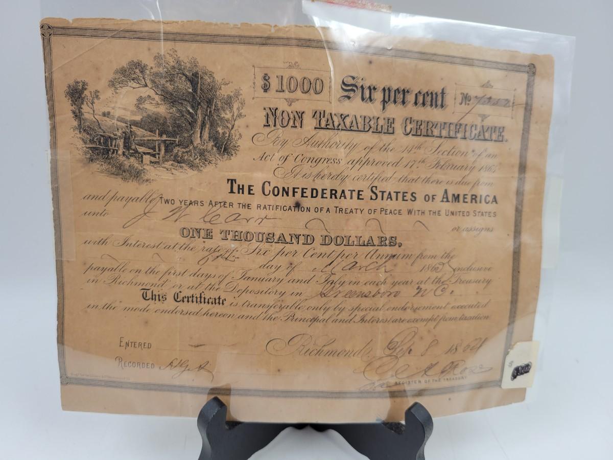 1864 CONFEDERATE $1000 BOND - GREENSBORO NC