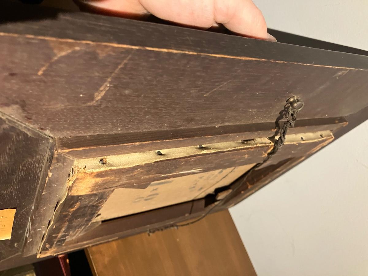 Minor age-appropriate flaws: a couple tiny paint flecks needing touch-up, some frame wear/scratches, and craquelure adding character. Truly attic fresh and unrestored — a genuine 19th-century time capsule!