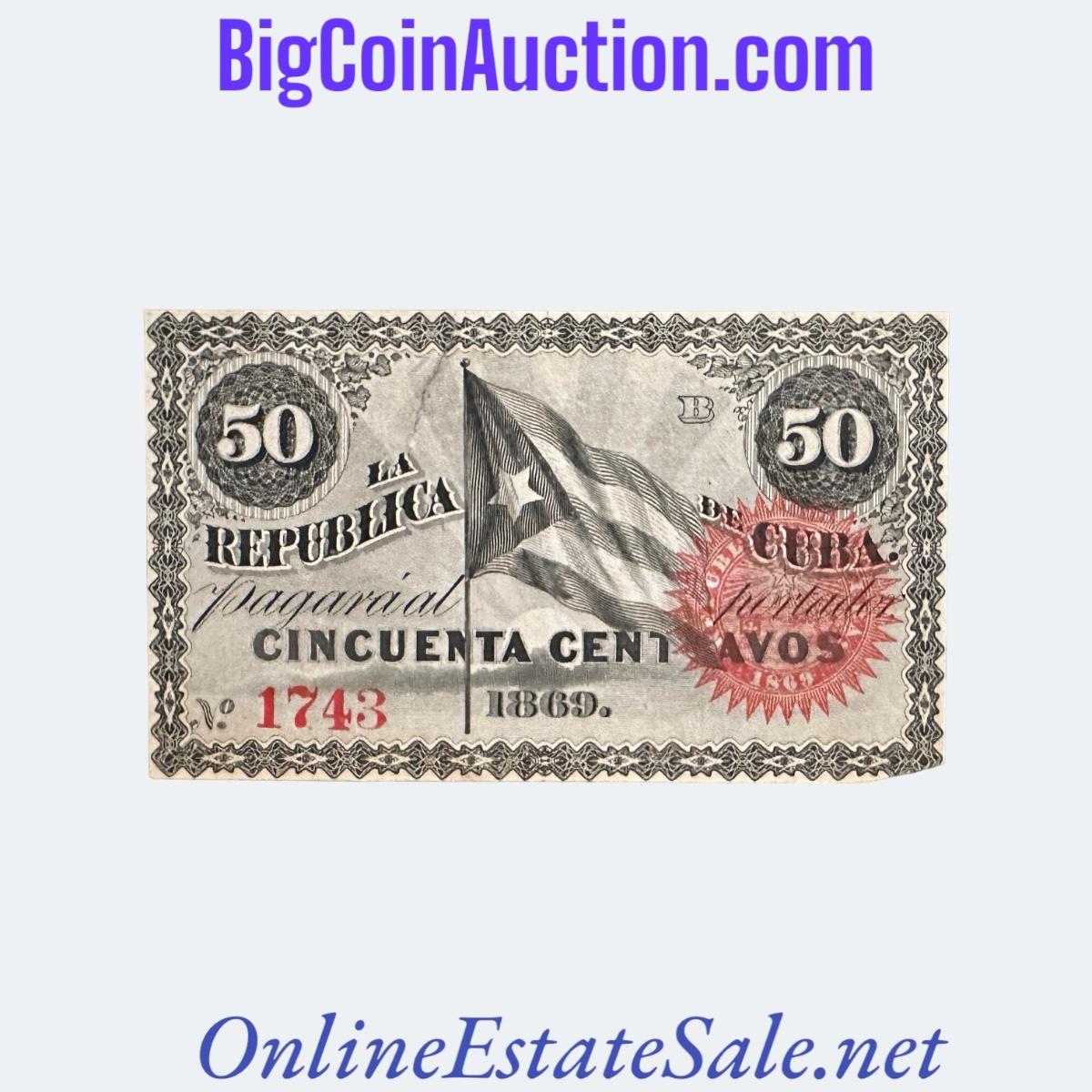 1869 CUBA 50 CENTAVOS