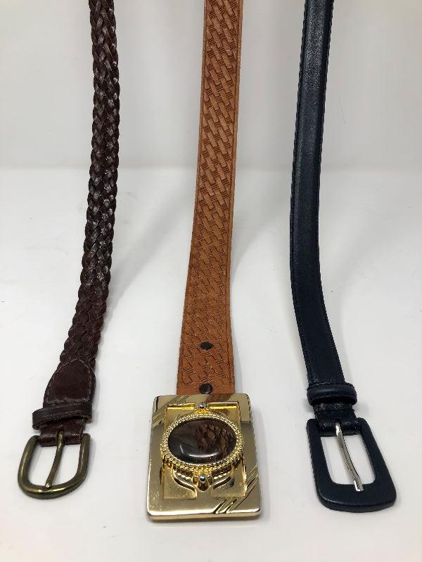 3 cute women's belts shortest measures 41". Includes a very nice hand crafted polished stone buckle,