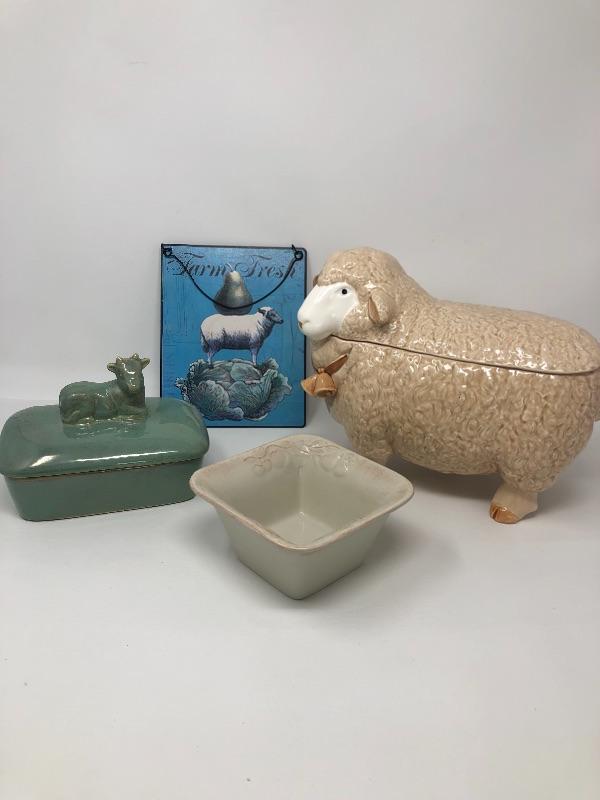 187: Sheep Cookie Jar, Cow Pottery and Others