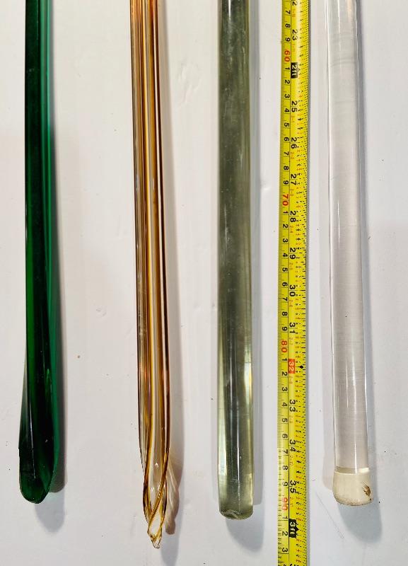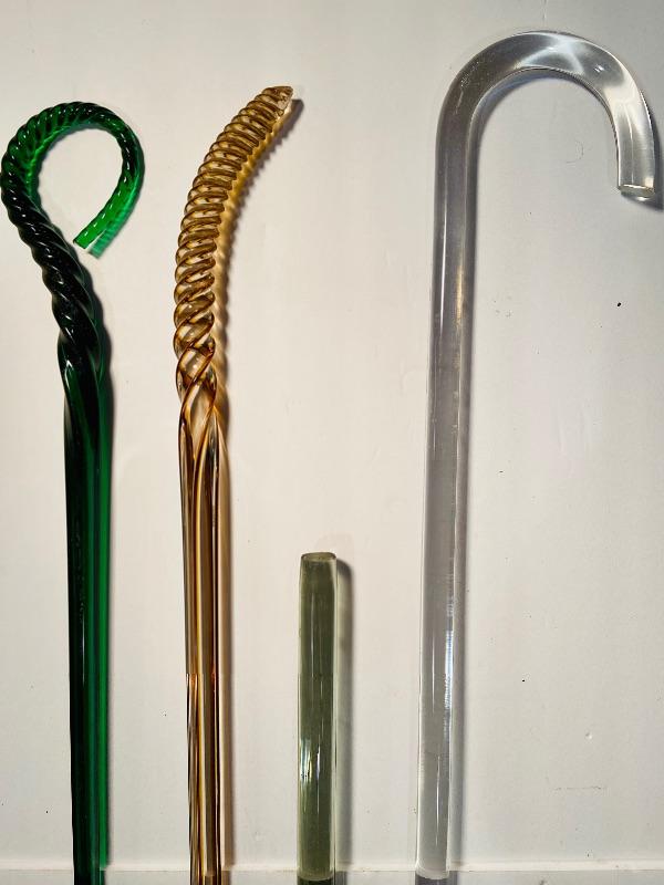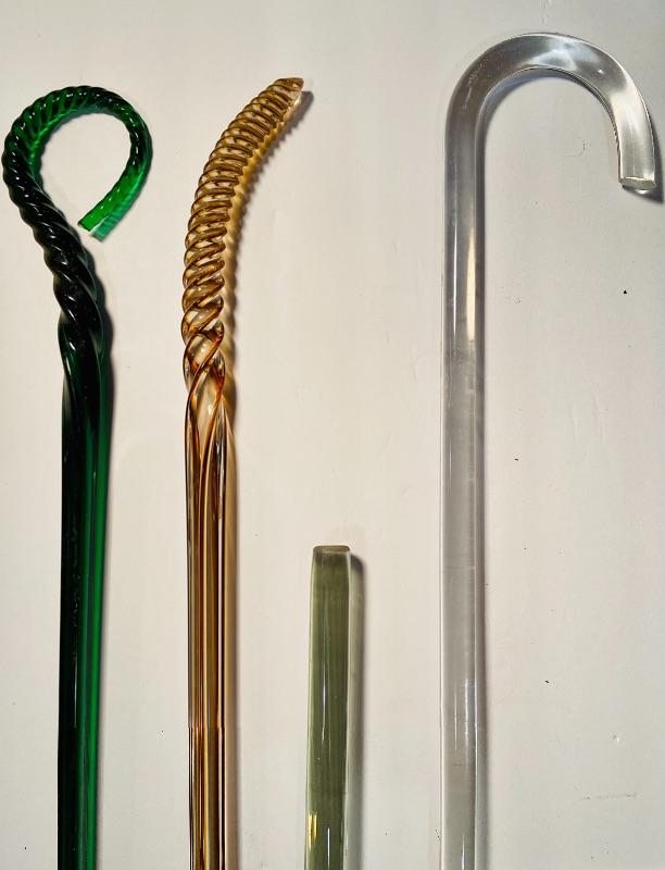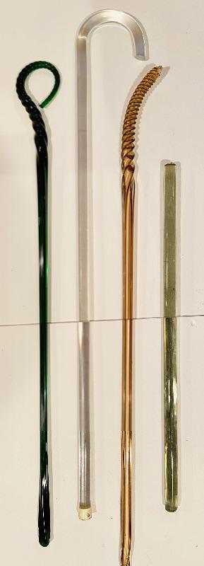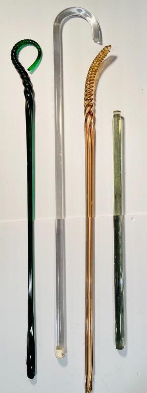 3 antique glass canes/parts, and one vintage acrylic cane. See pictures for sizing. MHW. Please see all pictures for content of the lot, condition of the lot, and measurements if taken. Pictures are the best representation of the items listed and items are untested unless indicated in description. Thank you for looking and have fun bidding!