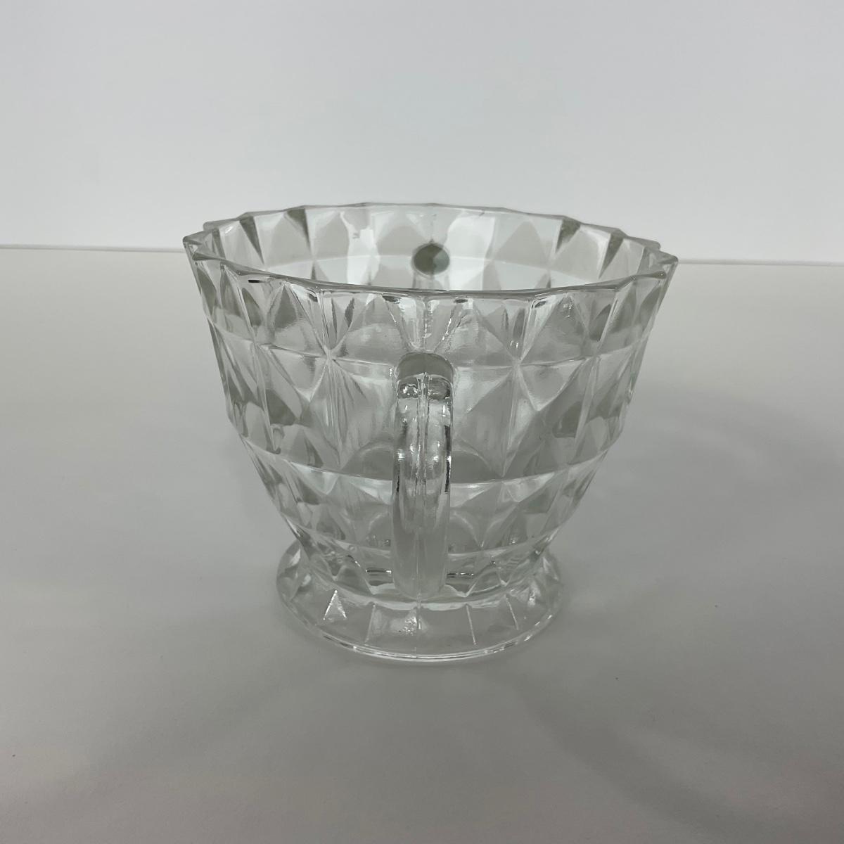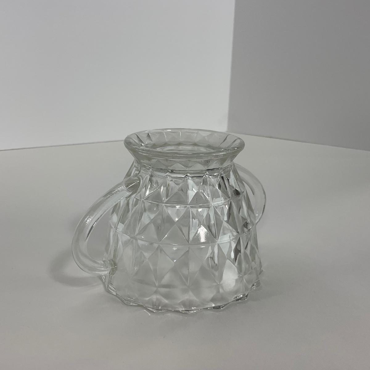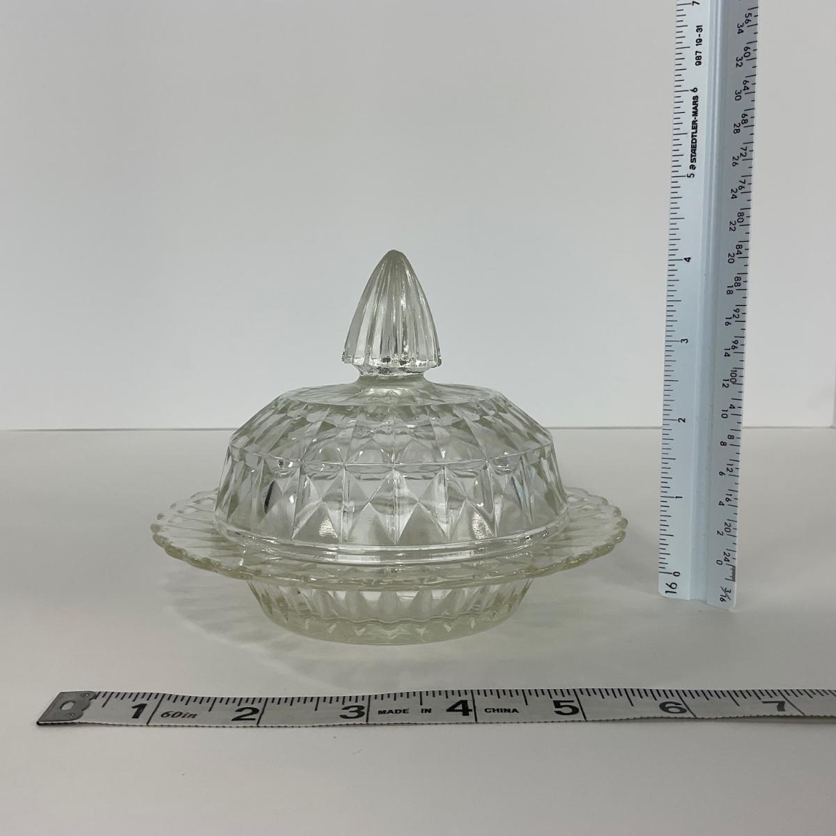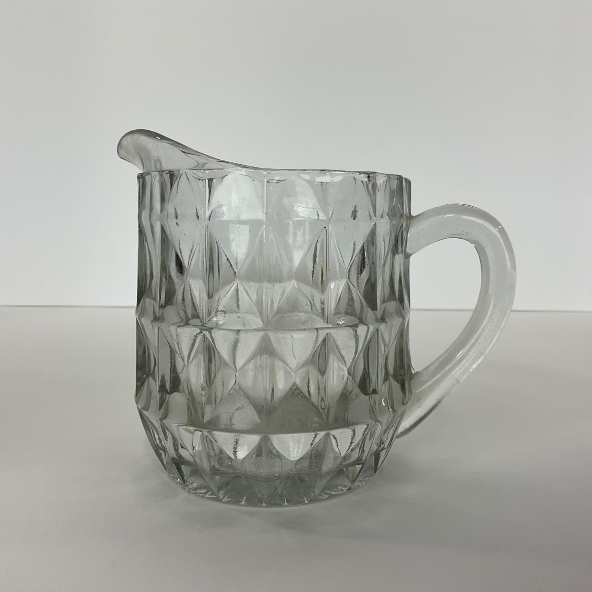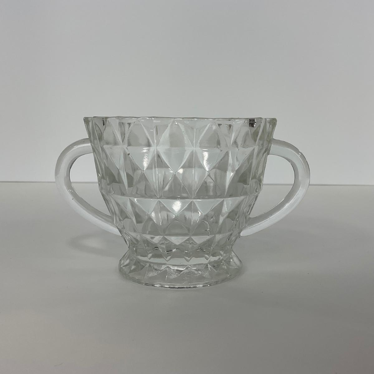 Five pieces of clear glass Windsor Diamond Jeanette Glass Co. (1932-1946) including one creamer, one lidded sugar, and one covered butter dish. Please see photos for details and condition. ::: Shipping is available on this lot. If you require shipping you must let us know at the close of the auction. We will coordinate with you after the item has been won. Shipping fees will include insurance up to or exceeding the value of all items being mailed. If you have any questions regarding this lot please contact the auctioneer either via this website, by direct email or by phone. PICK UP TIMES and other important information can be found in the TERMS and DESCRIPTION of the auction. Please take a look for pertinent information. Thanks!