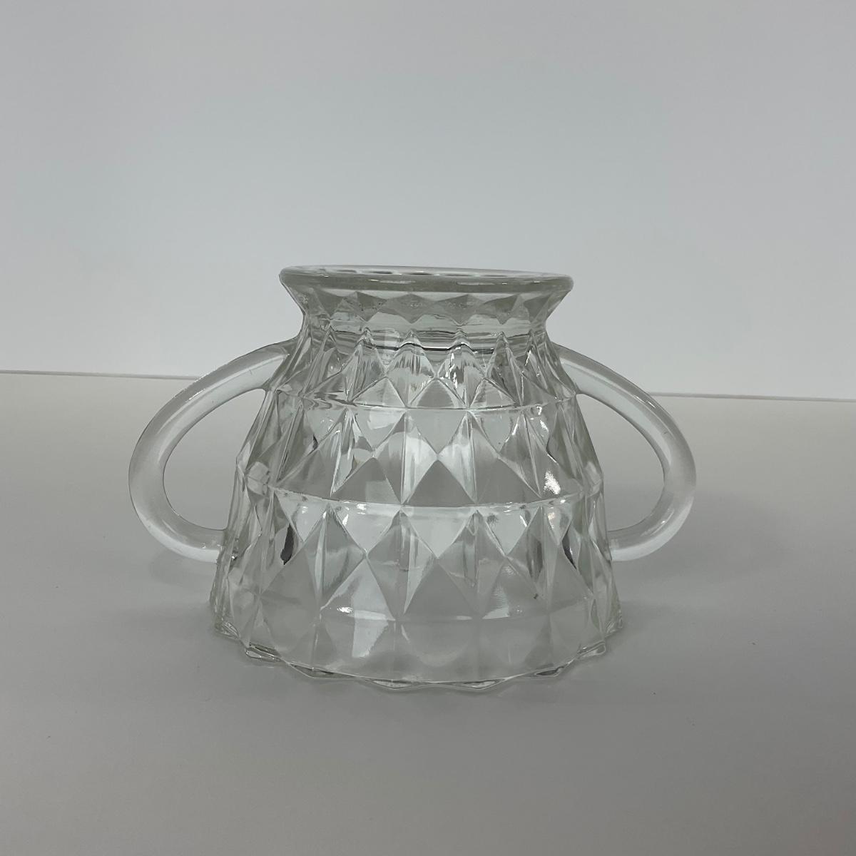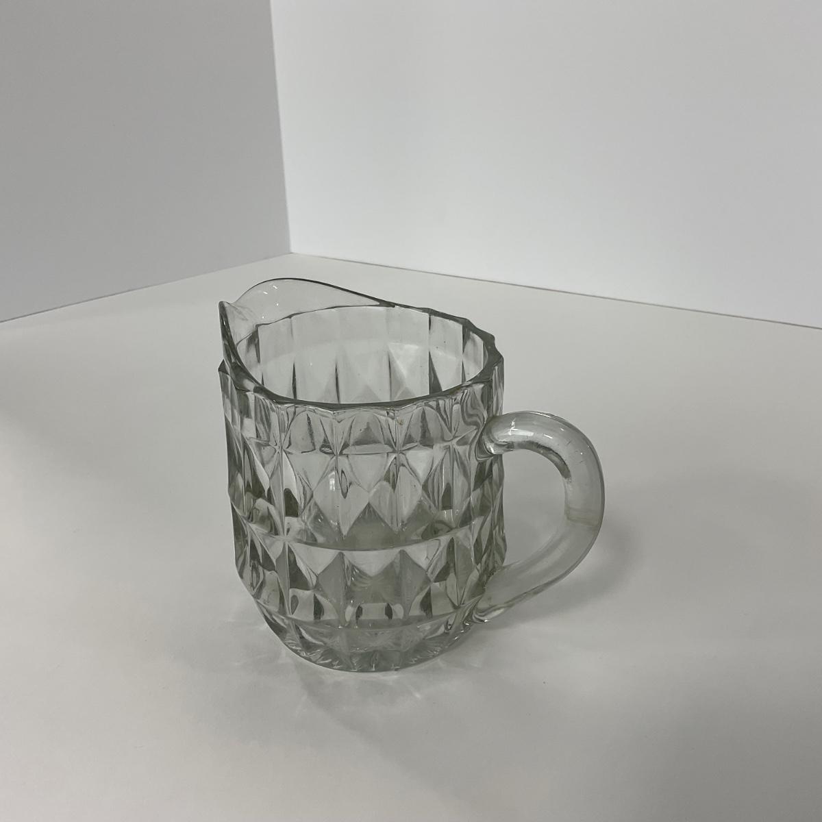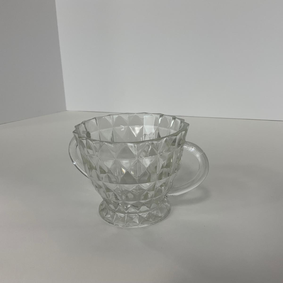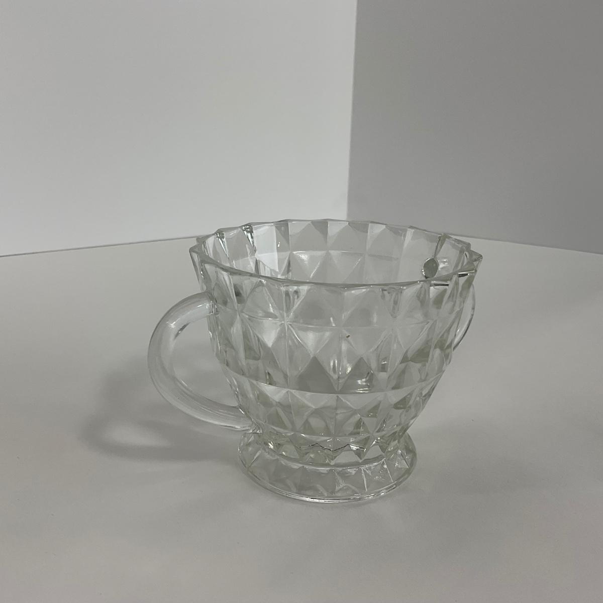 Five pieces of clear glass Windsor Diamond Jeanette Glass Co. (1932-1946) including one creamer, one lidded sugar, and one covered butter dish. Please see photos for details and condition. ::: Shipping is available on this lot. If you require shipping you must let us know at the close of the auction. We will coordinate with you after the item has been won. Shipping fees will include insurance up to or exceeding the value of all items being mailed. If you have any questions regarding this lot please contact the auctioneer either via this website, by direct email or by phone. PICK UP TIMES and other important information can be found in the TERMS and DESCRIPTION of the auction. Please take a look for pertinent information. Thanks!