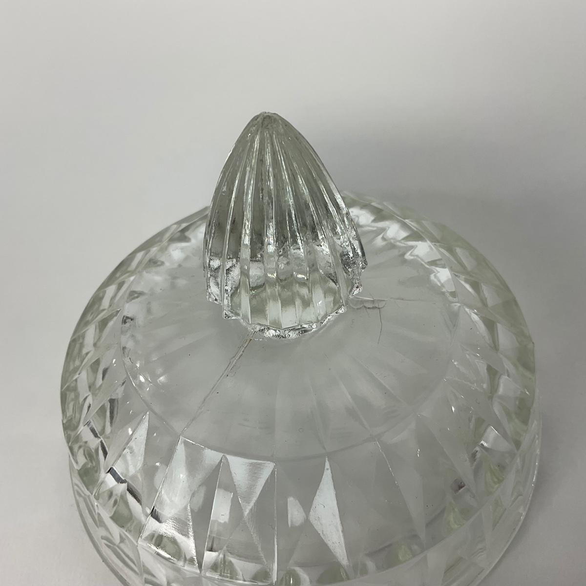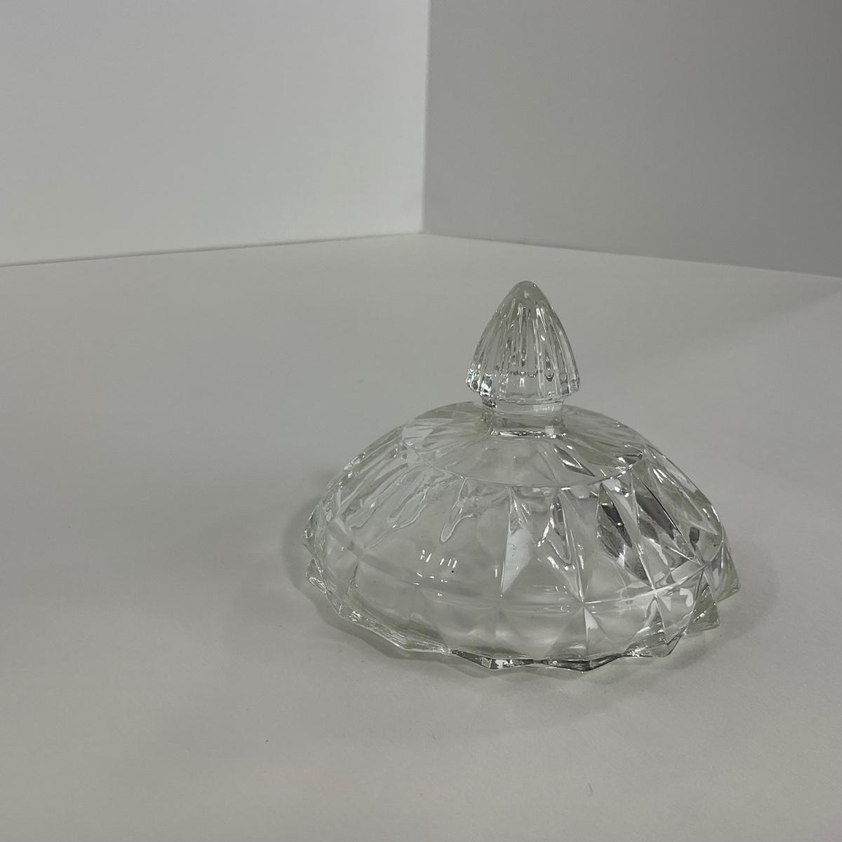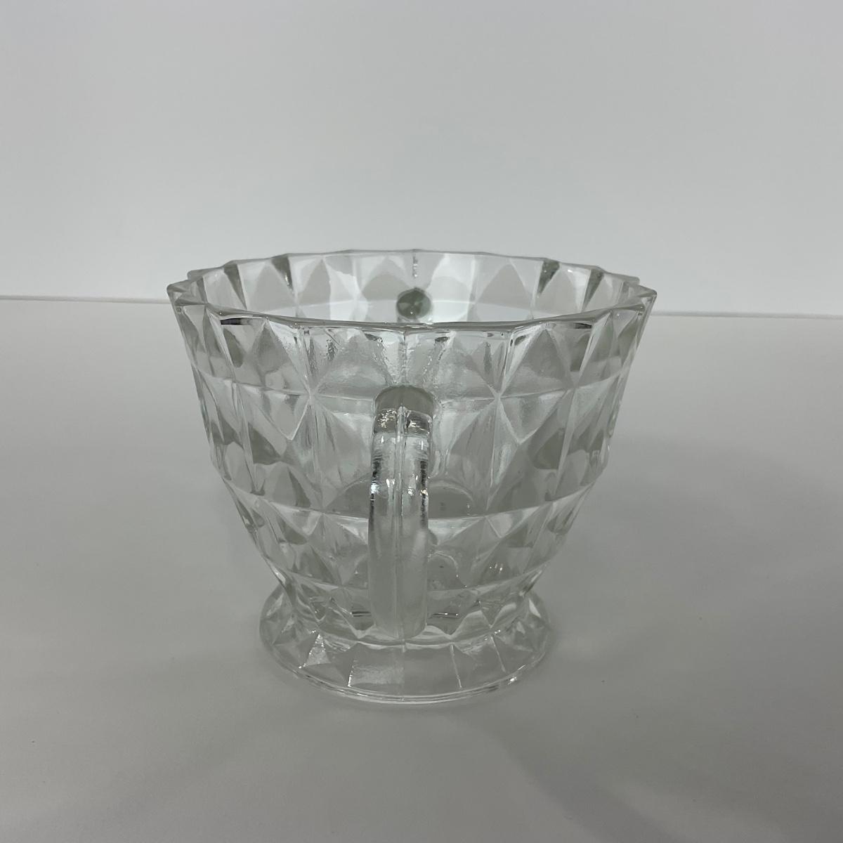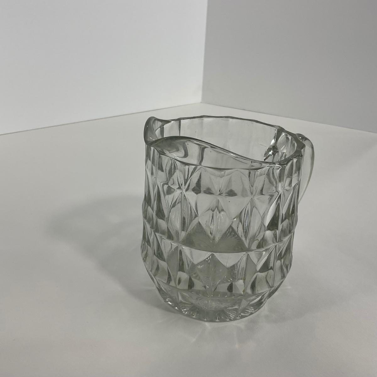 Five pieces of clear glass Windsor Diamond Jeanette Glass Co. (1932-1946) including one creamer, one lidded sugar, and one covered butter dish. Please see photos for details and condition. ::: Shipping is available on this lot. If you require shipping you must let us know at the close of the auction. We will coordinate with you after the item has been won. Shipping fees will include insurance up to or exceeding the value of all items being mailed. If you have any questions regarding this lot please contact the auctioneer either via this website, by direct email or by phone. PICK UP TIMES and other important information can be found in the TERMS and DESCRIPTION of the auction. Please take a look for pertinent information. Thanks!