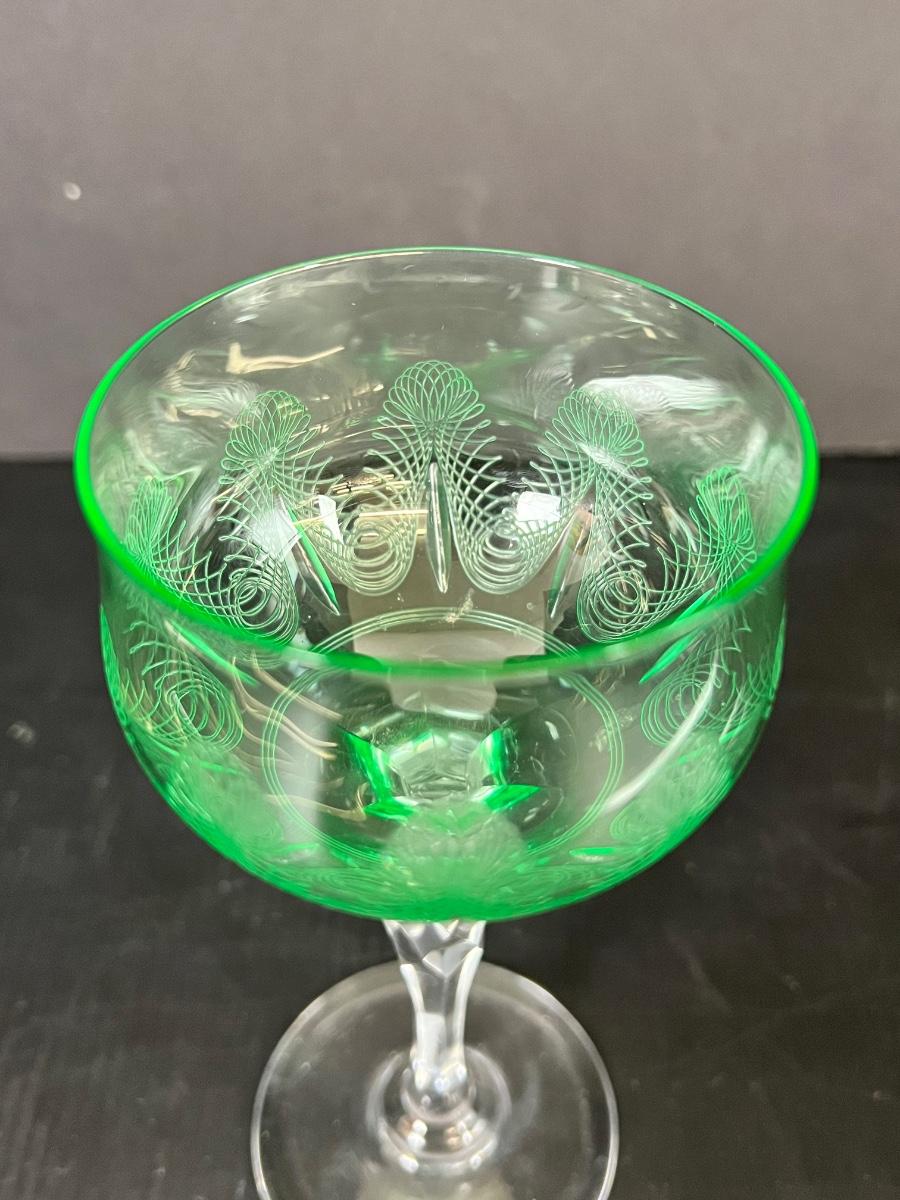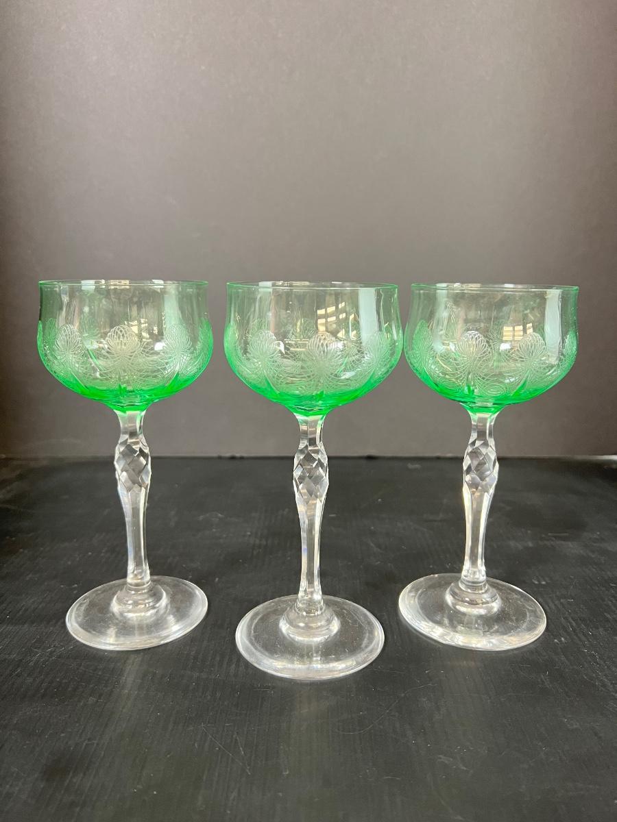 3 Etched Wine Glasses of the 1940’s, measures 6.5” High