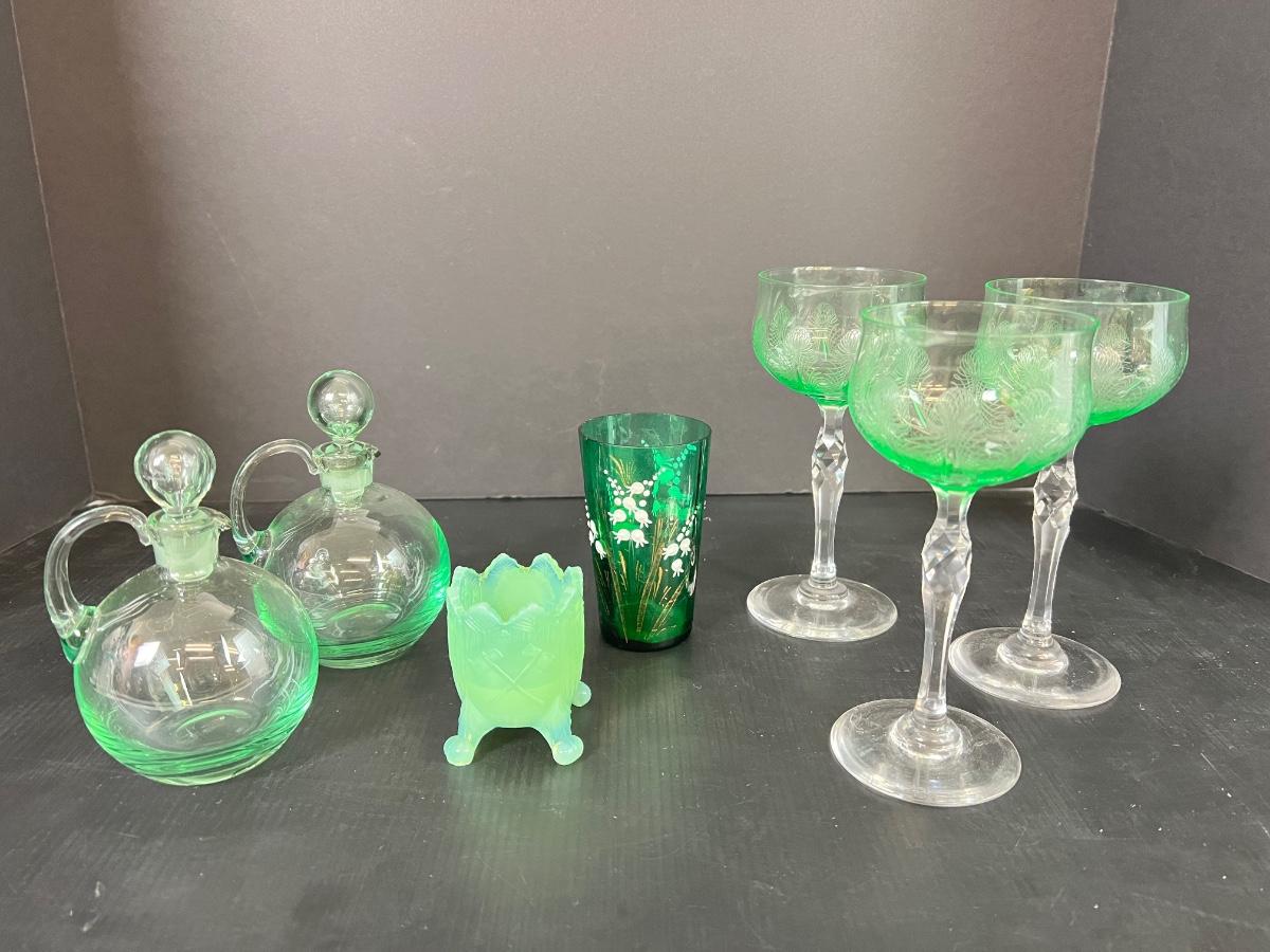 187 Lot of Vintage Green Glass Items ( 7 pcs )