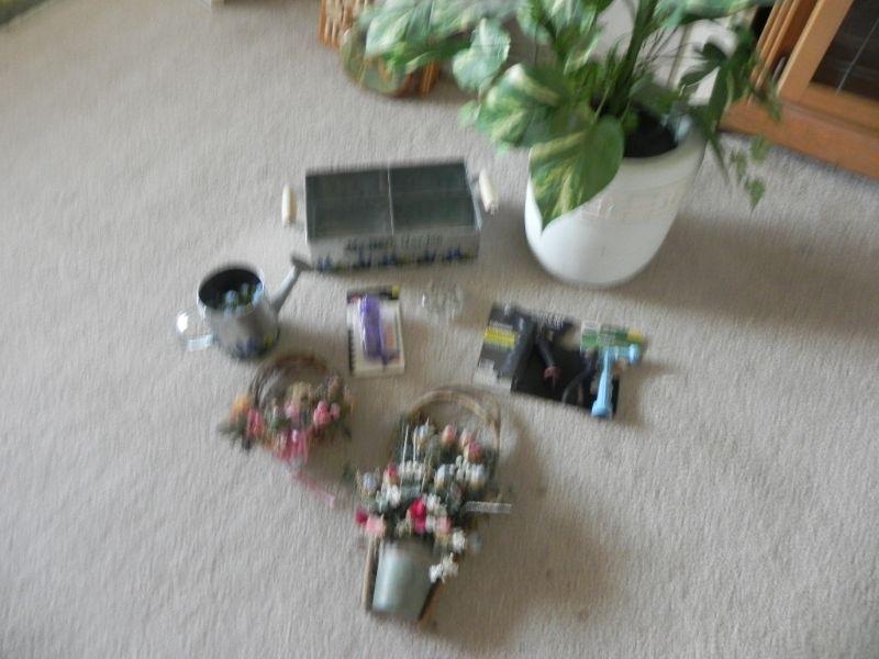 HOSE SPRAYERS NEW, WATERCAN , HAND GARDEN TOOL HOLDER, FAUX PLANT