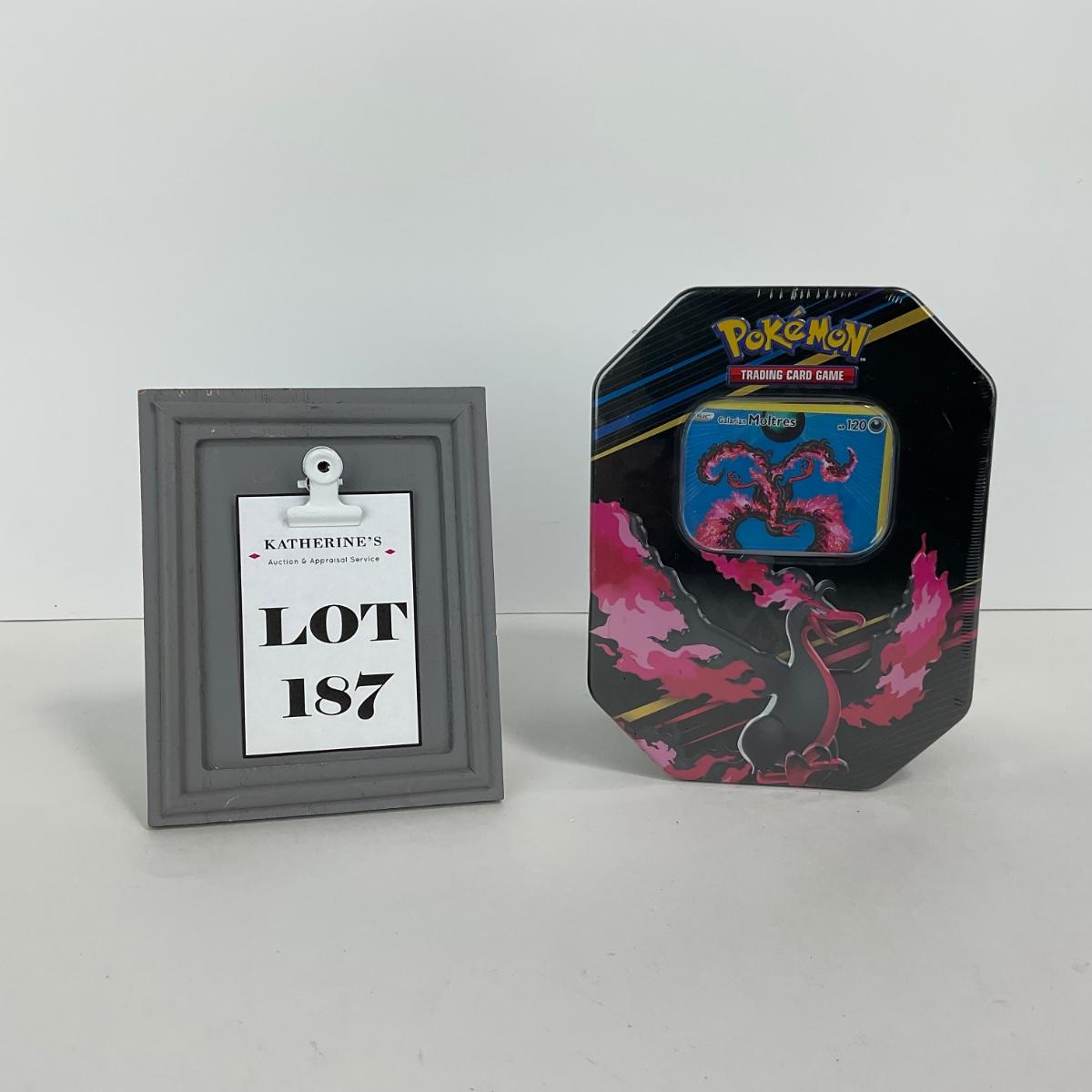 One tin of unopened pokemon cards. Please see photos for details and condition. ::: Shipping is available on this lot. If you require shipping you must let us know at the close of the auction. We will coordinate with you after the item has been won. Shipping fees will include insurance up to or exceeding the value of all items being mailed. If you have any questions regarding this lot please contact the auctioneer either via this website, by direct email or by phone. PICK UP TIMES and other important information can be found in the TERMS and DESCRIPTION of the auction. Please take a look for pertinent information. Thanks!