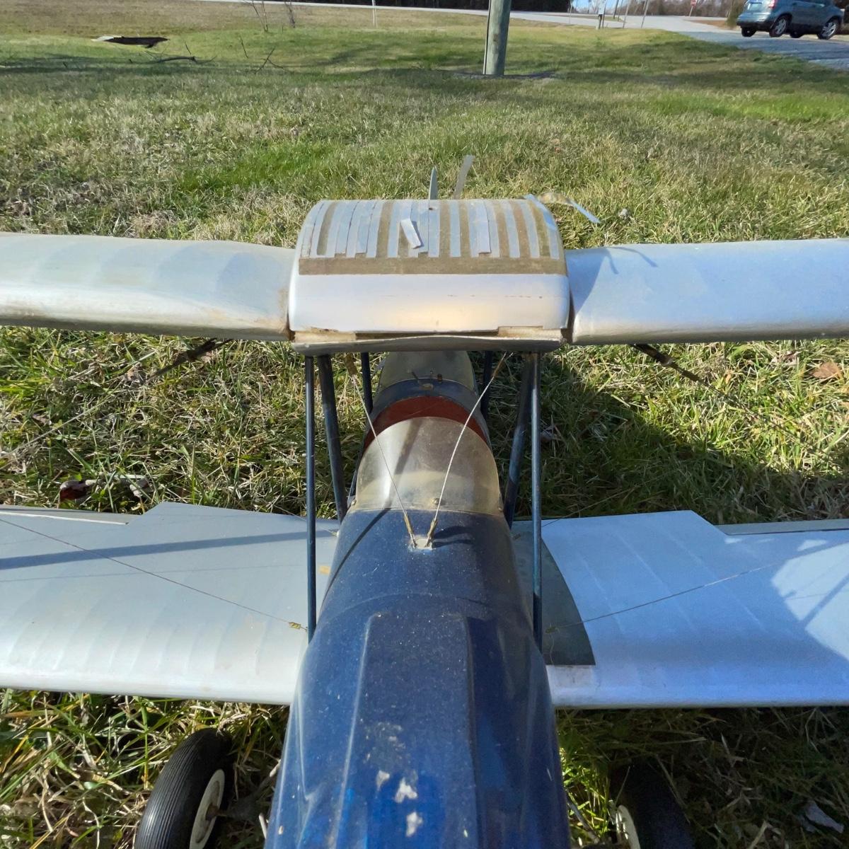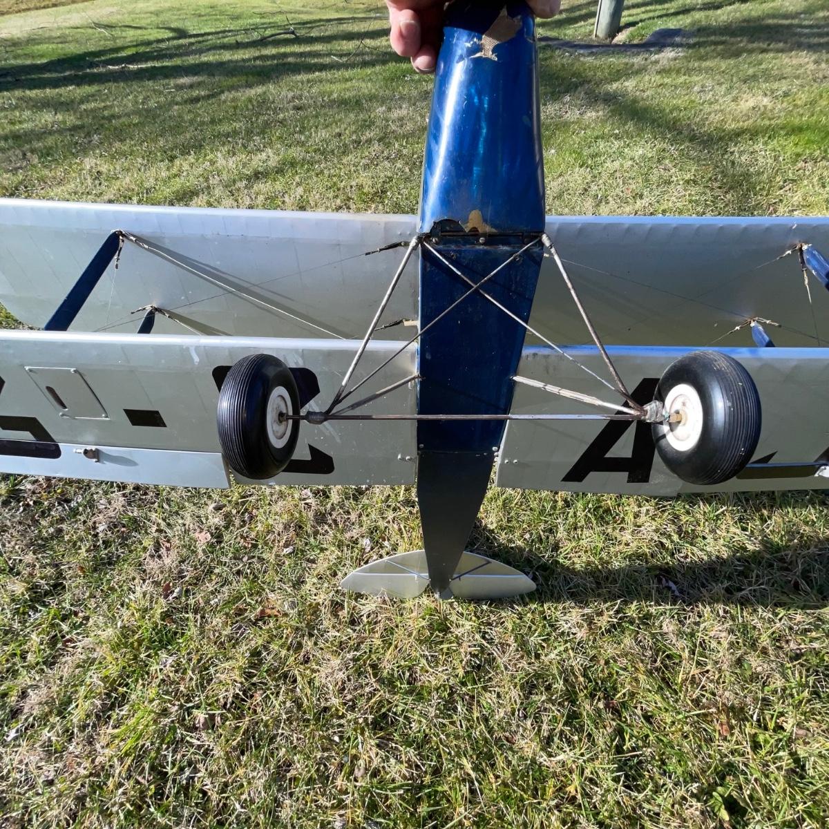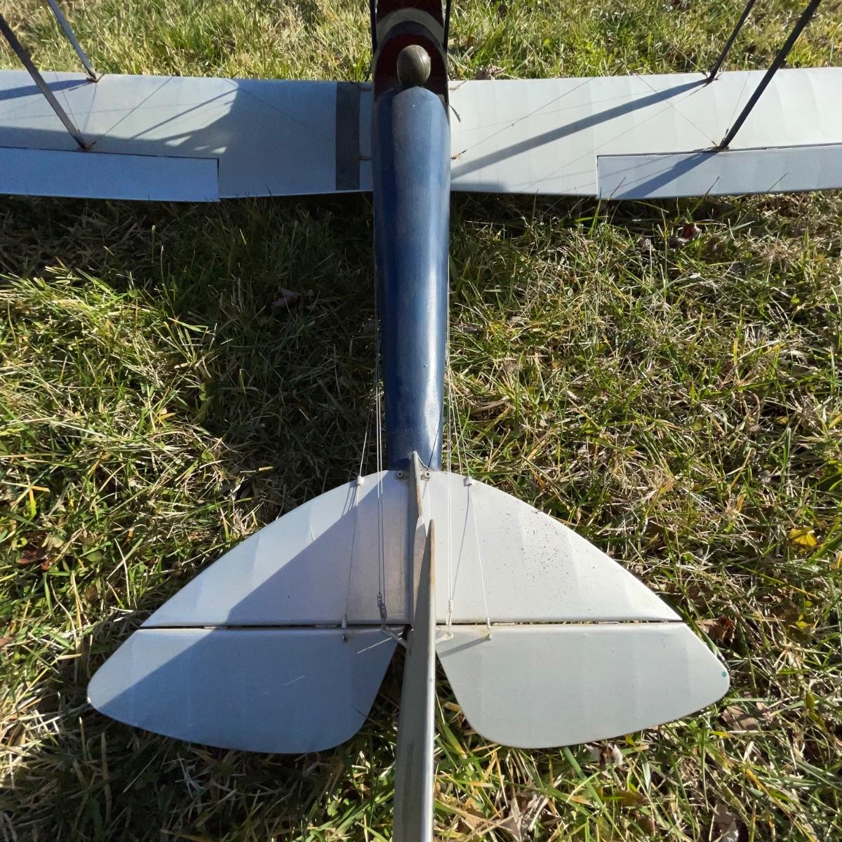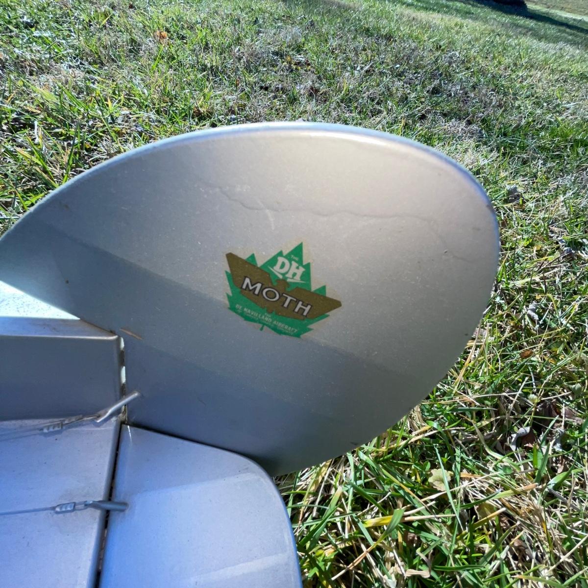 “The DE Moth” DE Havilland Aircraft Model. Exact scale, unknown. Overall great condition for its age which is unknown. Light gray, and dark blue colors. Plastic plane model film covers the wood frame. internal motor and propeller not included. Existing fuel line hoses included see pictures for more details