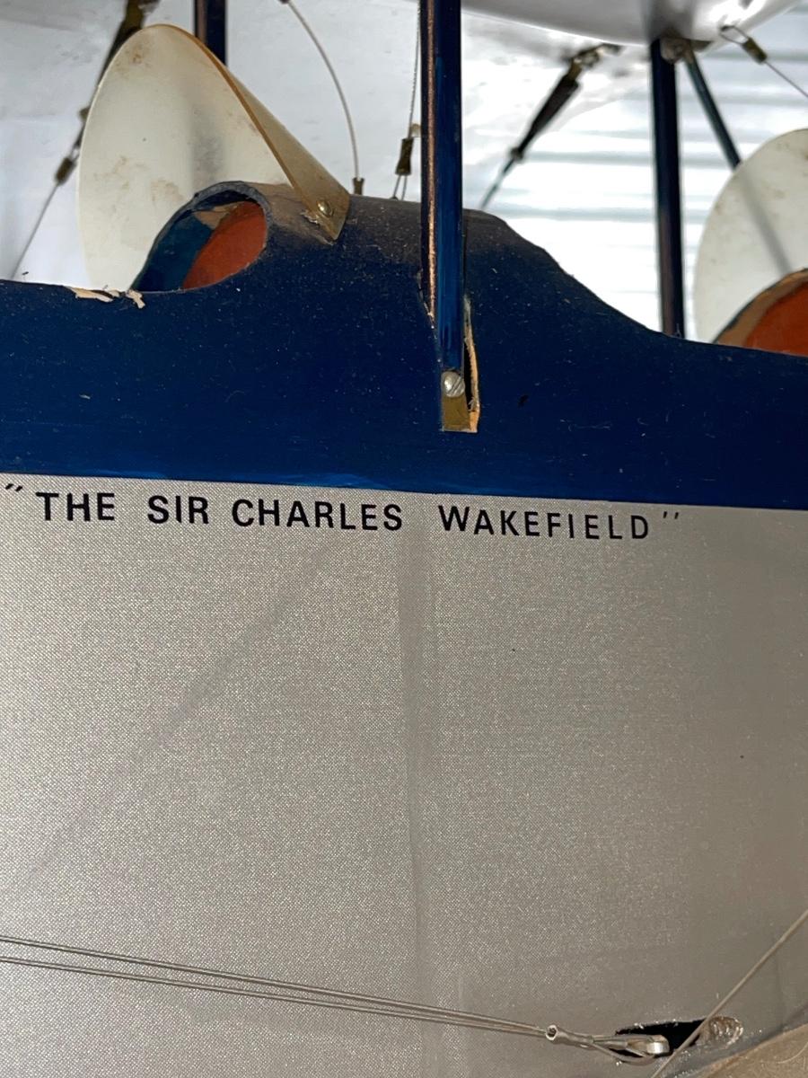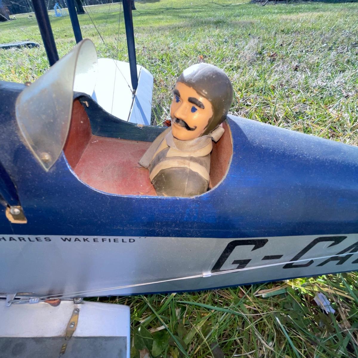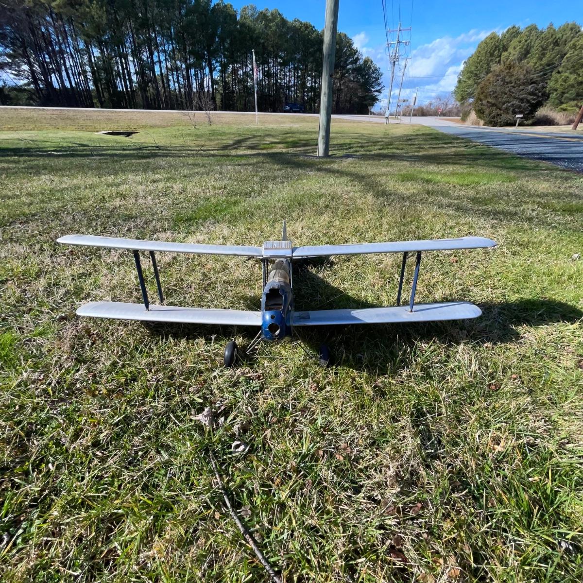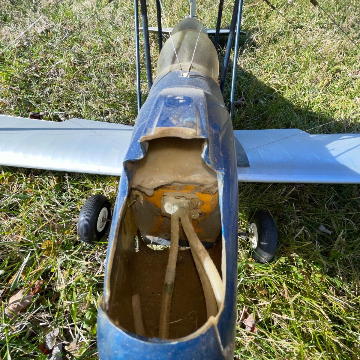 “The DE Moth” DE Havilland Aircraft Model. Exact scale, unknown. Overall great condition for its age which is unknown. Light gray, and dark blue colors. Plastic plane model film covers the wood frame. internal motor and propeller not included. Existing fuel line hoses included see pictures for more details
