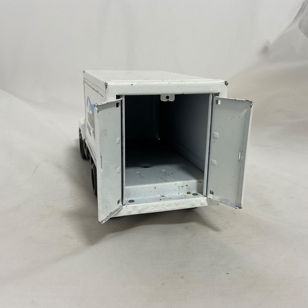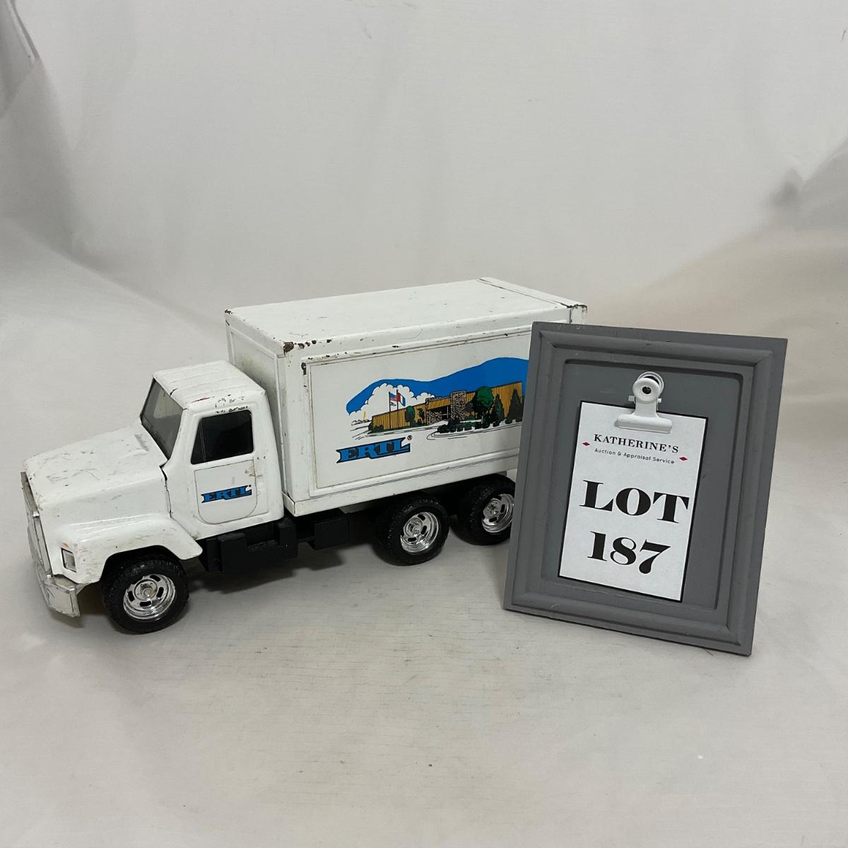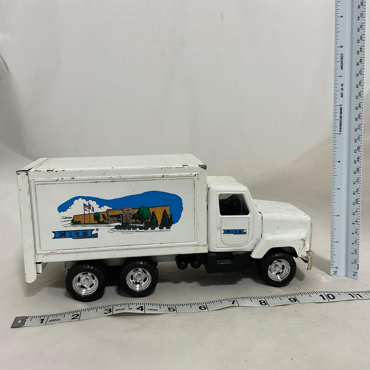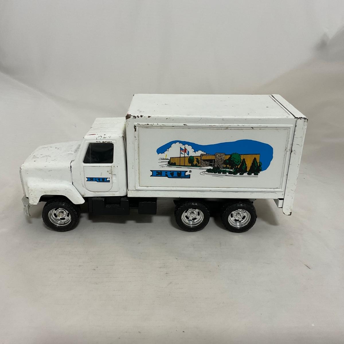 One vintage Ertl white box truck. Well loved and missing some paint. Please see photos for details and condition. ::: Shipping is available on this lot. If you require shipping you must let us know at the close of the auction. We will coordinate with you after the item has been won. Shipping fees will include insurance up to or exceeding the value of all items being mailed. If you have any questions regarding this lot please contact the auctioneer either via this website, by direct email or by phone. PICK UP TIMES and other important information can be found in the TERMS and DESCRIPTION of the auction. Please take a look for pertinent information. Thanks!