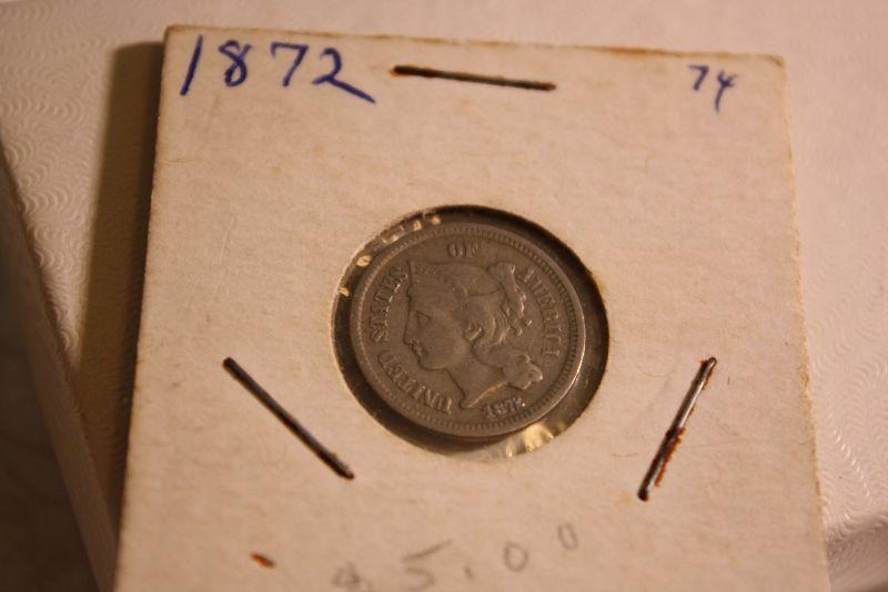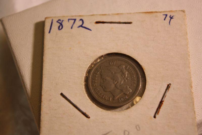 1872 three cent coin in good condition