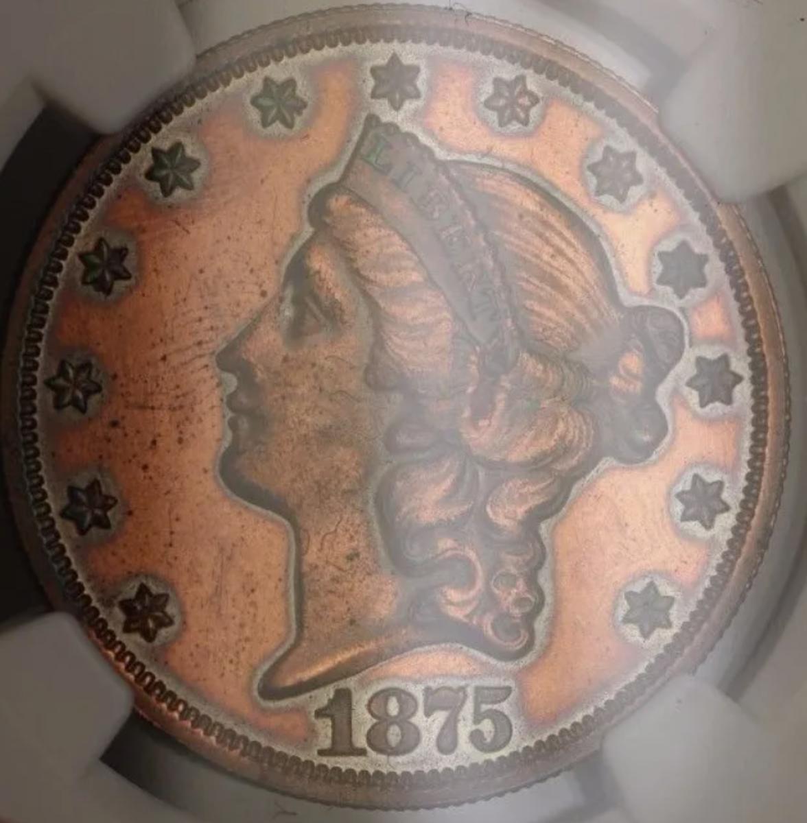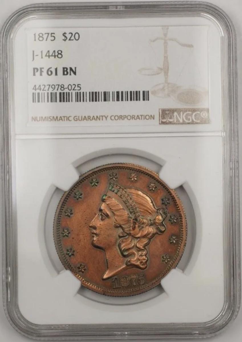 1875 $20 Liberty Double Eagle Proof Pattern Coin J-1448 NGC PF-61 WW Not Gold