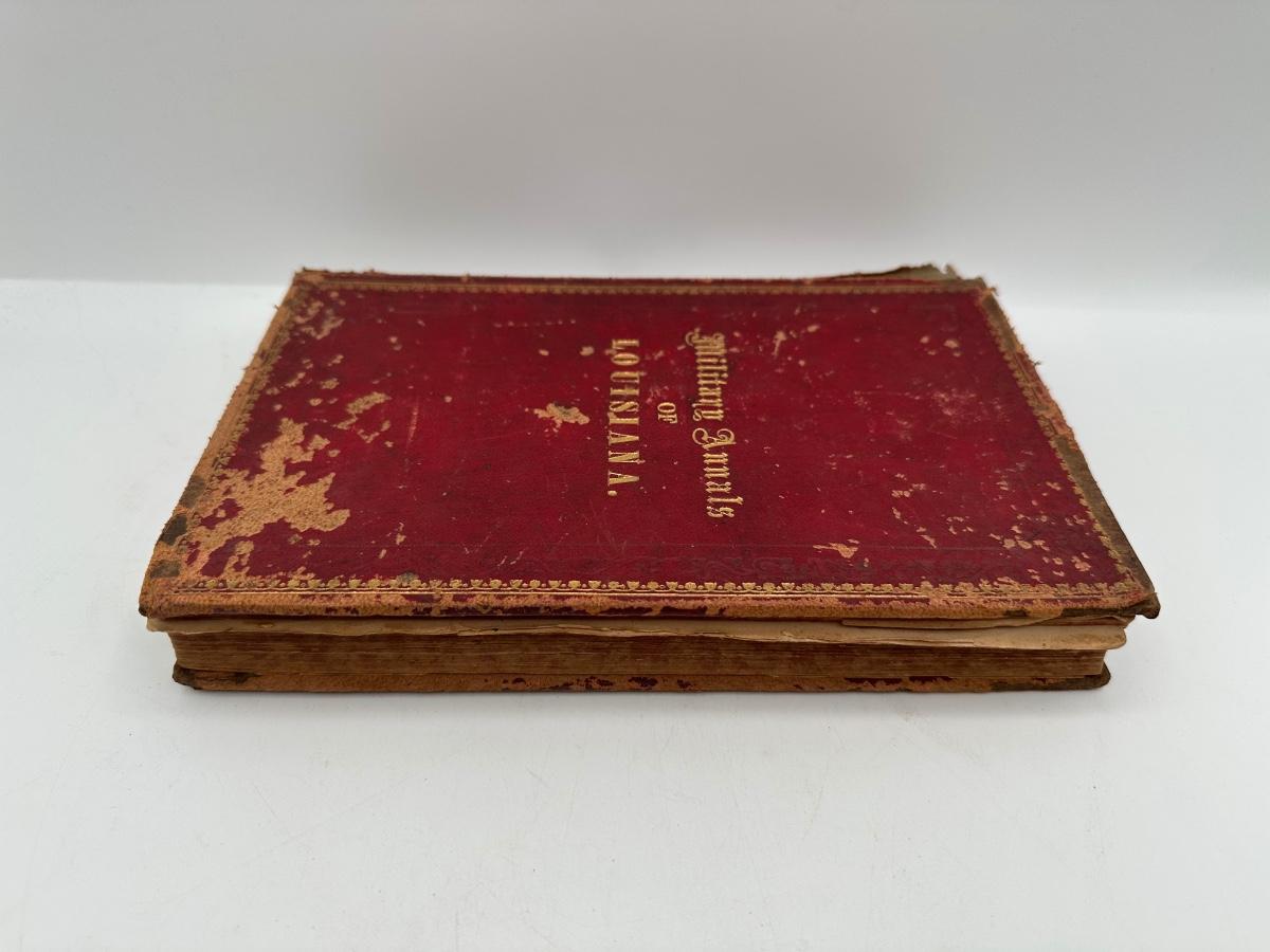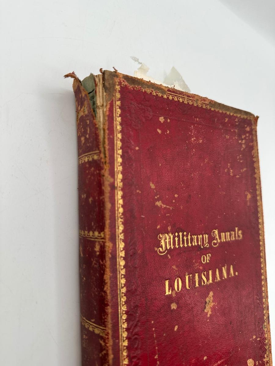 Civil War history book: Military Record of Louisiana by Napier Bartlett, published in New Orleans in 1875 by L. Graham & Co. Original red leather cover with gilt title Military Annals of Louisiana.