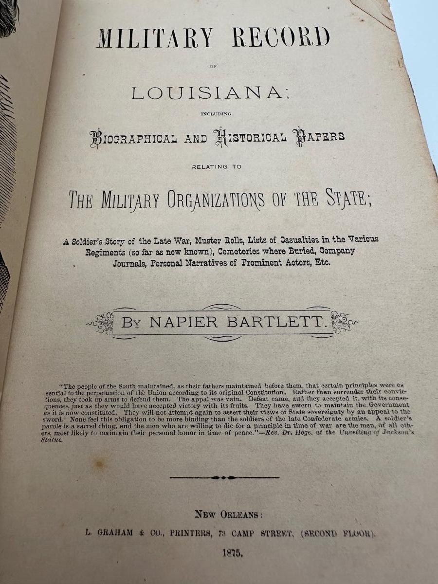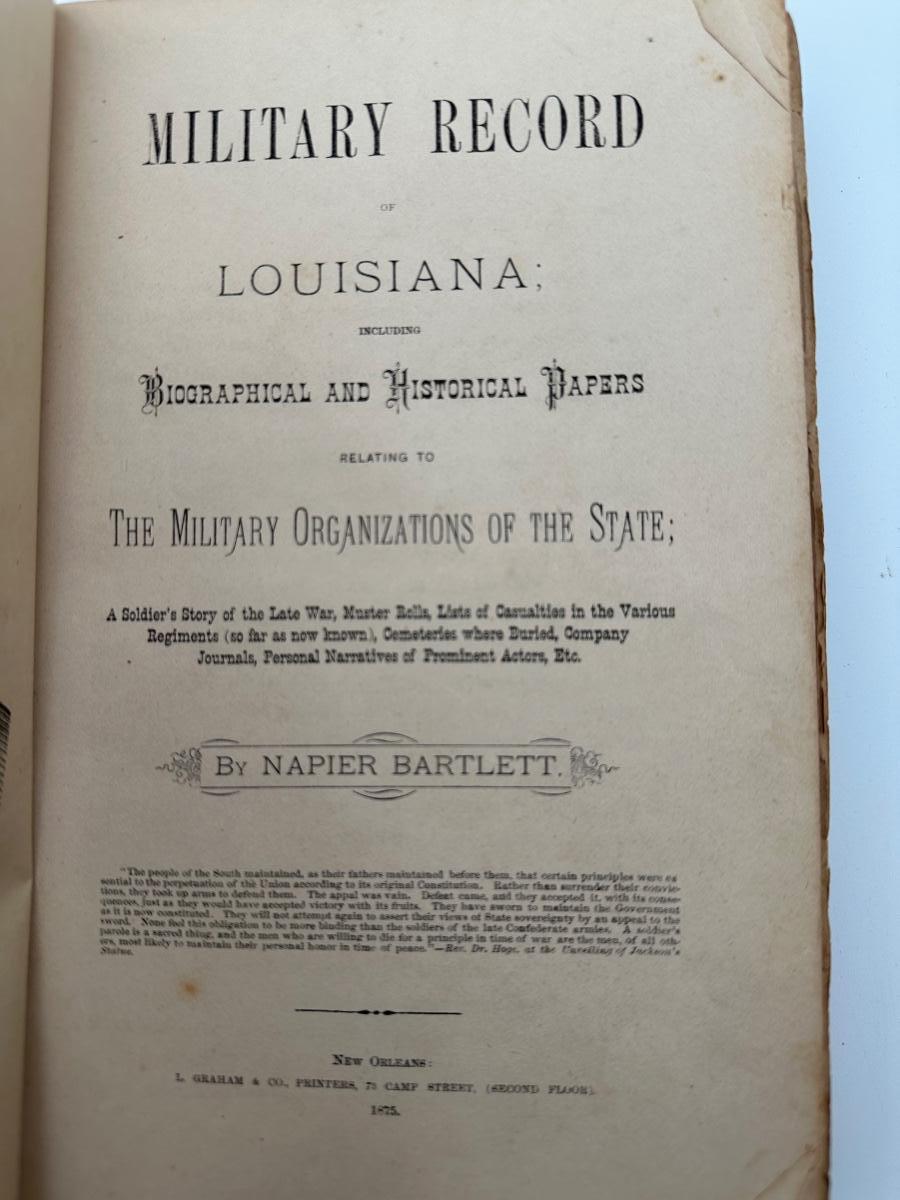 1875 Military Record of Louisiana by Napier Bartlett – Civil War Confederate History, New Orleans