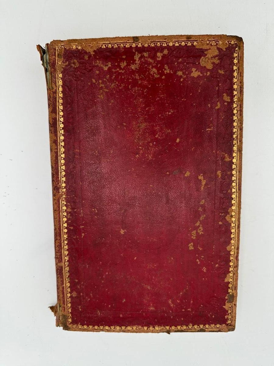 Cover shows heavy wear and loss to leather; spine cracked and fragile; pages with age toning and foxing, but text complete.