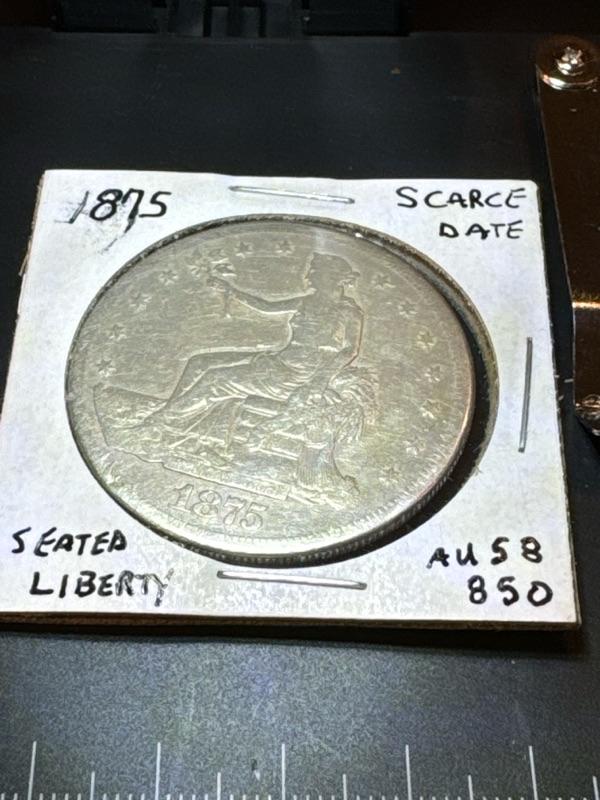 1875 SEATED LIBERTY 1$ U.S. coin Scarce Date Au 58