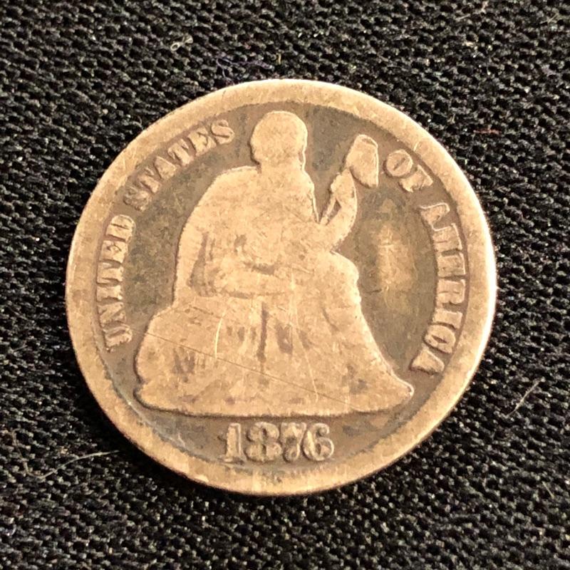 1876 CC Carson City Seated Liberty Dime - 10c Heavy Wear