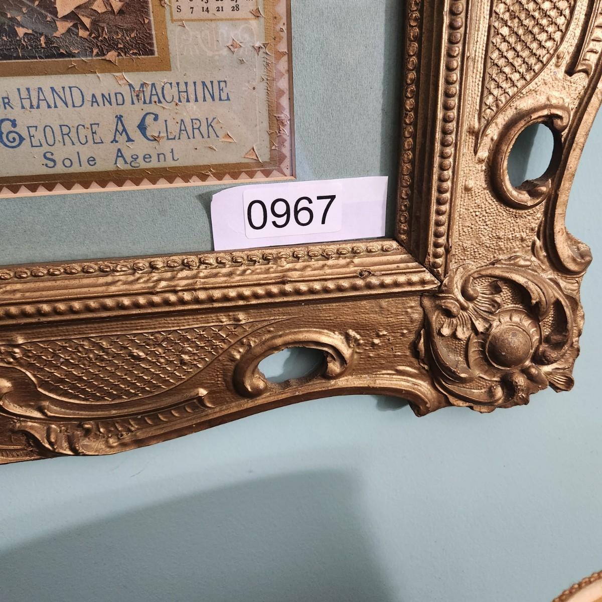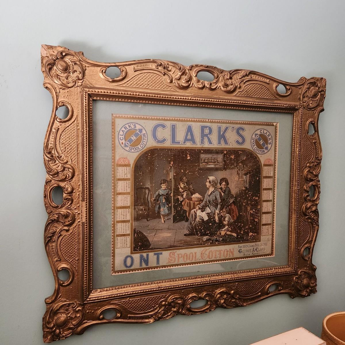 1878 Clark's ONT Spool Cotton Framed Calendar, 1800's Picture Frame