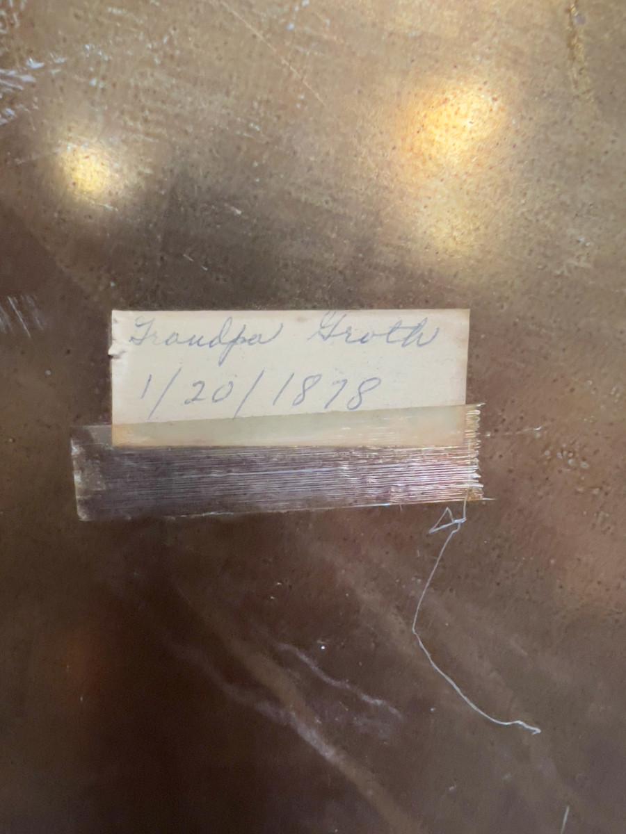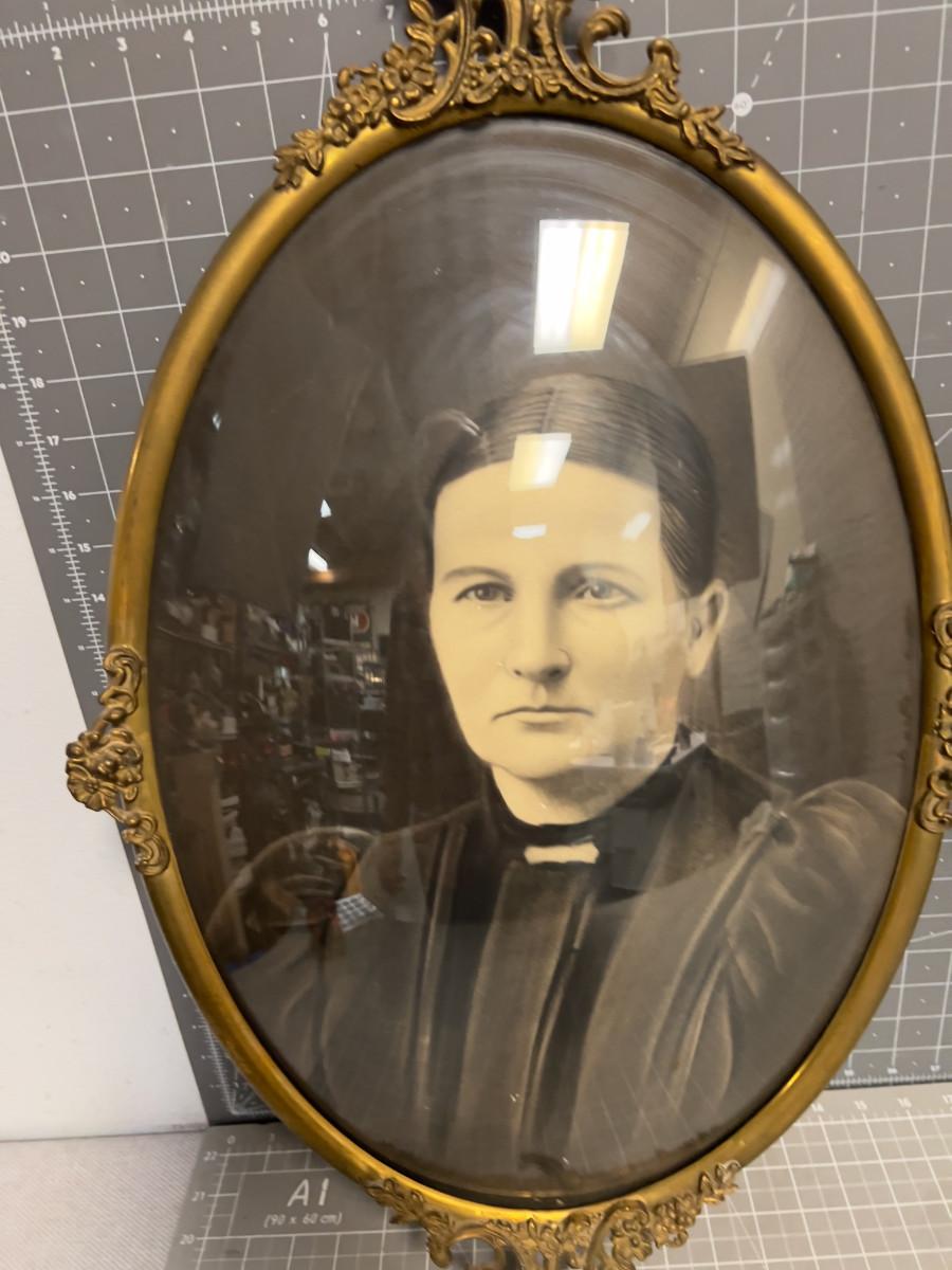 1878 Grandma Groth Photo, Ornate Metal Frame with Curved Glass