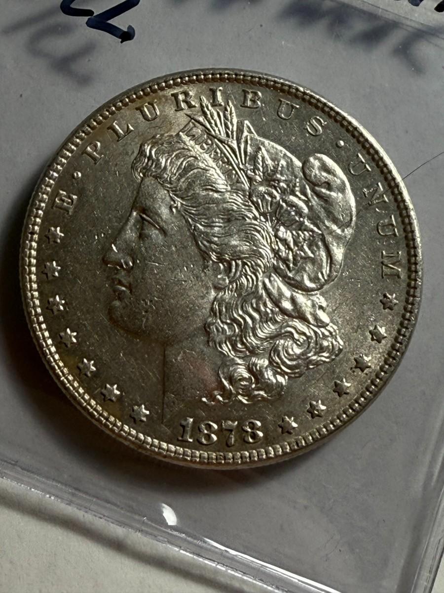 1878-P 7/8 TF WEAK AU CONDITION/CLEANED MORGAN SILVER DOLLAR AS PICTURED COIN #11. $5 DOMESTIC SHIPPING,