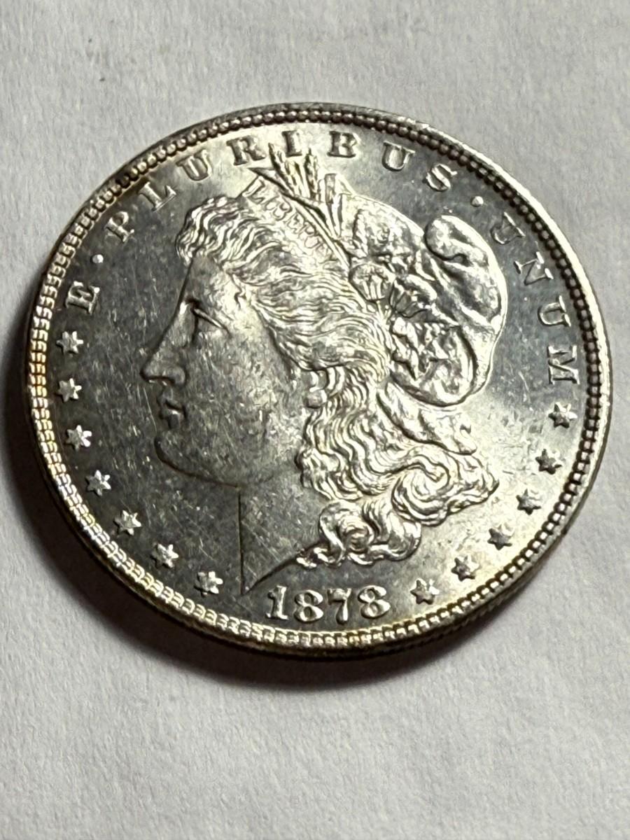 1878-P 7/8 TF WEAK VARIETY AU+ CONDITION LIGHTLY CLEANED MORGAN SILVER DOLLAR.