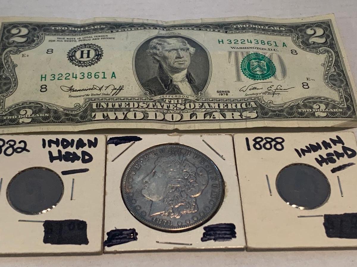 1878-S Silver Dollar / $2 Bill / Indian Head Pennies