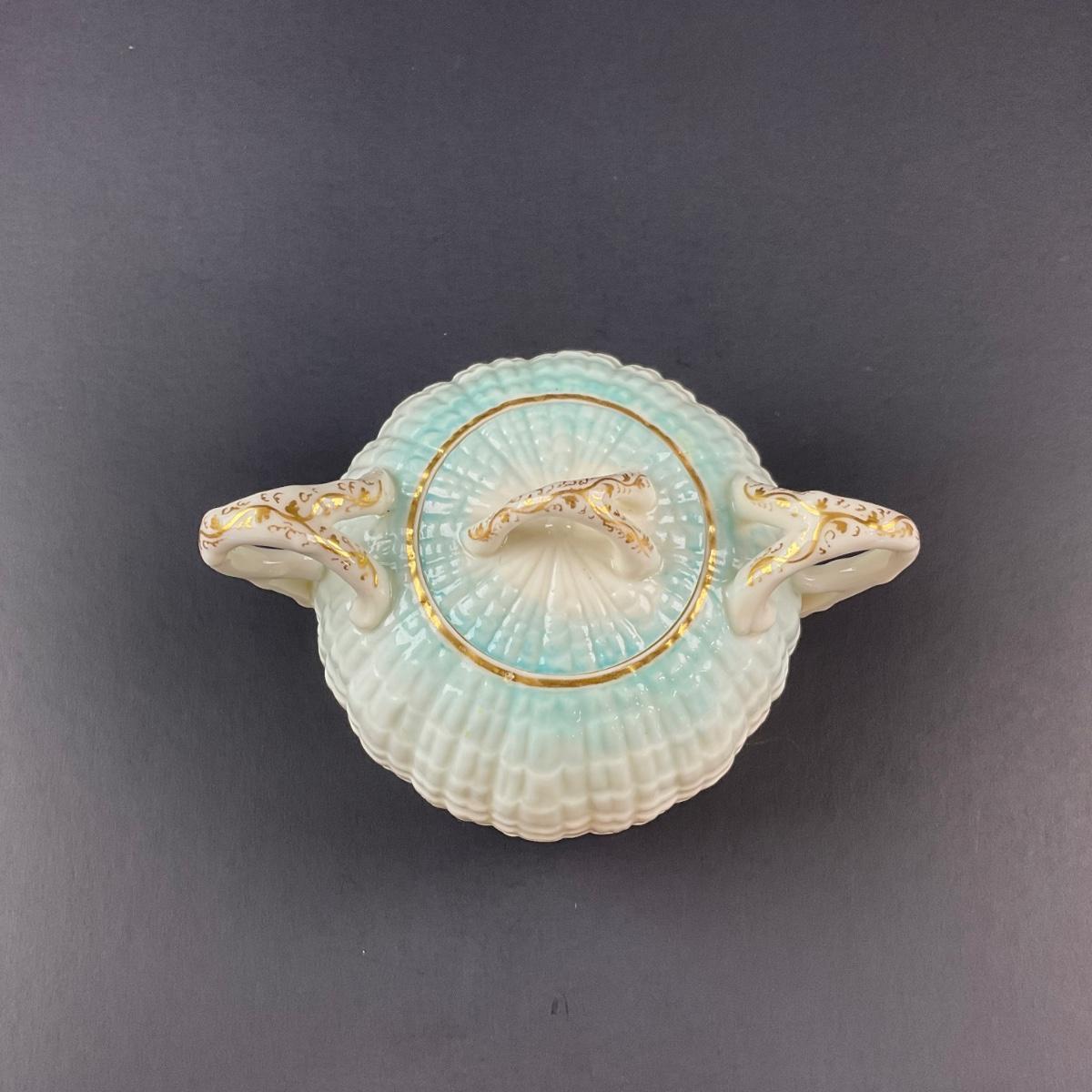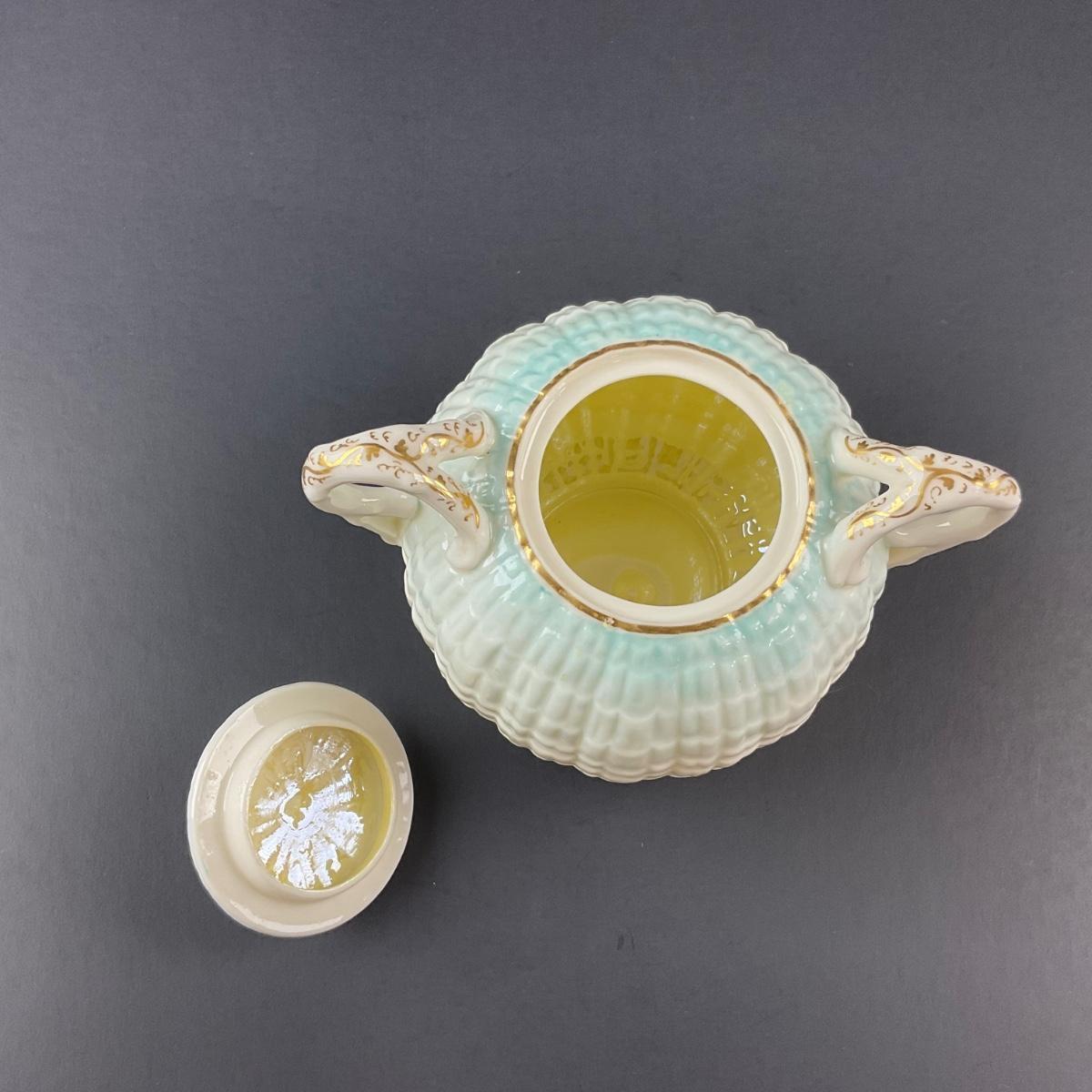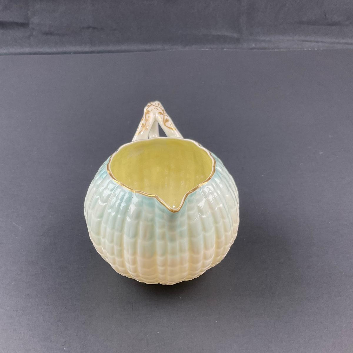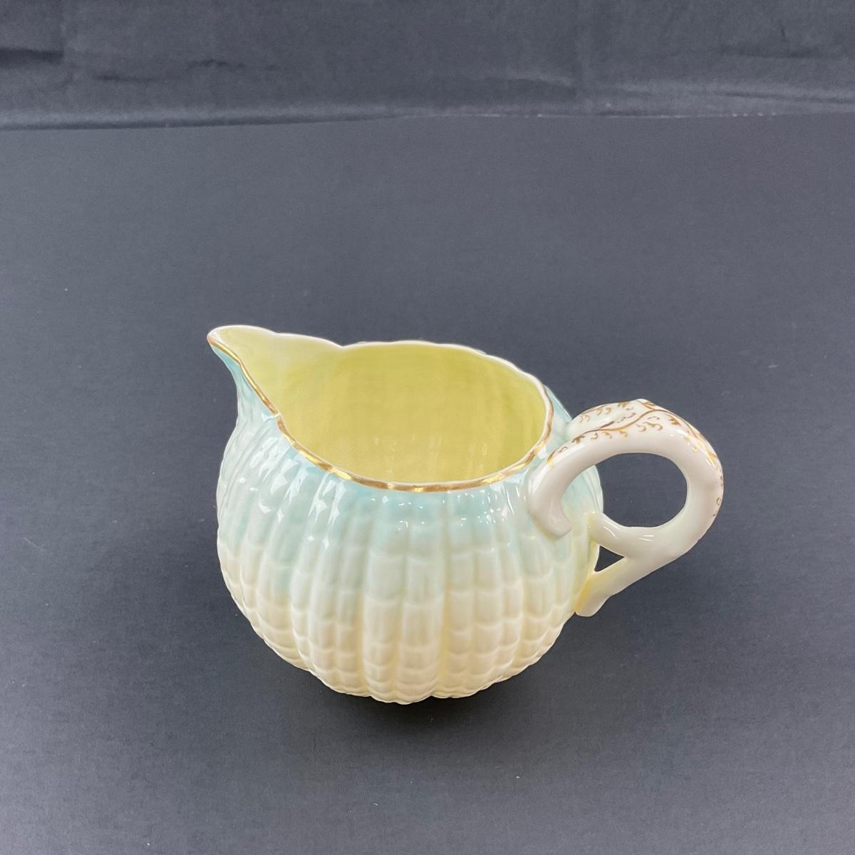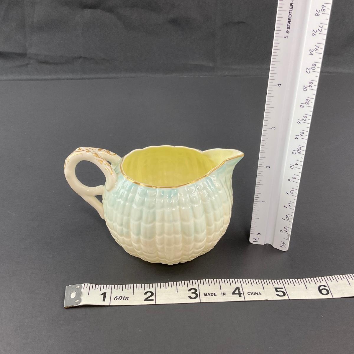 Four pieces total of what is believed to be Blue Neptune Belleek. The covered sugar and creamer have older 1890’s makers marks and the tray has a newer Belleek 6th mark. All pieces have no damage, and appear to be in great shape with no visable chips, cracks, or broken pieces. Please see photos for details and condition. Any condition statement is given as a courtesy to a client, is an opinion, and should not be treated as a statement of fact. Reference to condition written, oral or within a condition report shall not be regarded as a full account of condition and may not include all defects, alterations, or restorations. Absence of a condition report does not imply a lot is flawless or lacking imperfections or damage. Katherine’s Auction & Appraisal Service shall have no responsibility for any error or omission. Returns shall not be accepted on the basis of condition. ::: Shipping is available on this lot. If you require shipping you must let us know at the close of the auction. We will coordinate with you after the item has been won. Shipping fees will include insurance up to or exceeding the value of all items being mailed. If you have any questions regarding this lot please contact the auctioneer either via this website, by direct email or by phone. PICK UP TIMES and other important information can be found in the TERMS and DESCRIPTION of the auction. Please take a look for pertinent information. Thanks!