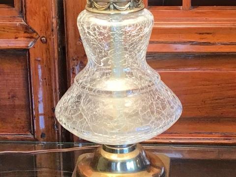 188 - Clear Crackle Glass Table Lamp w/ Beaded Shade