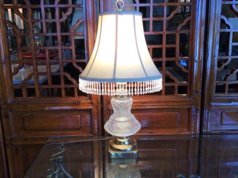 This lovely lamp features a crystal finial. The shade has a 15" dia. and the lamp is 28" tall with the shade.