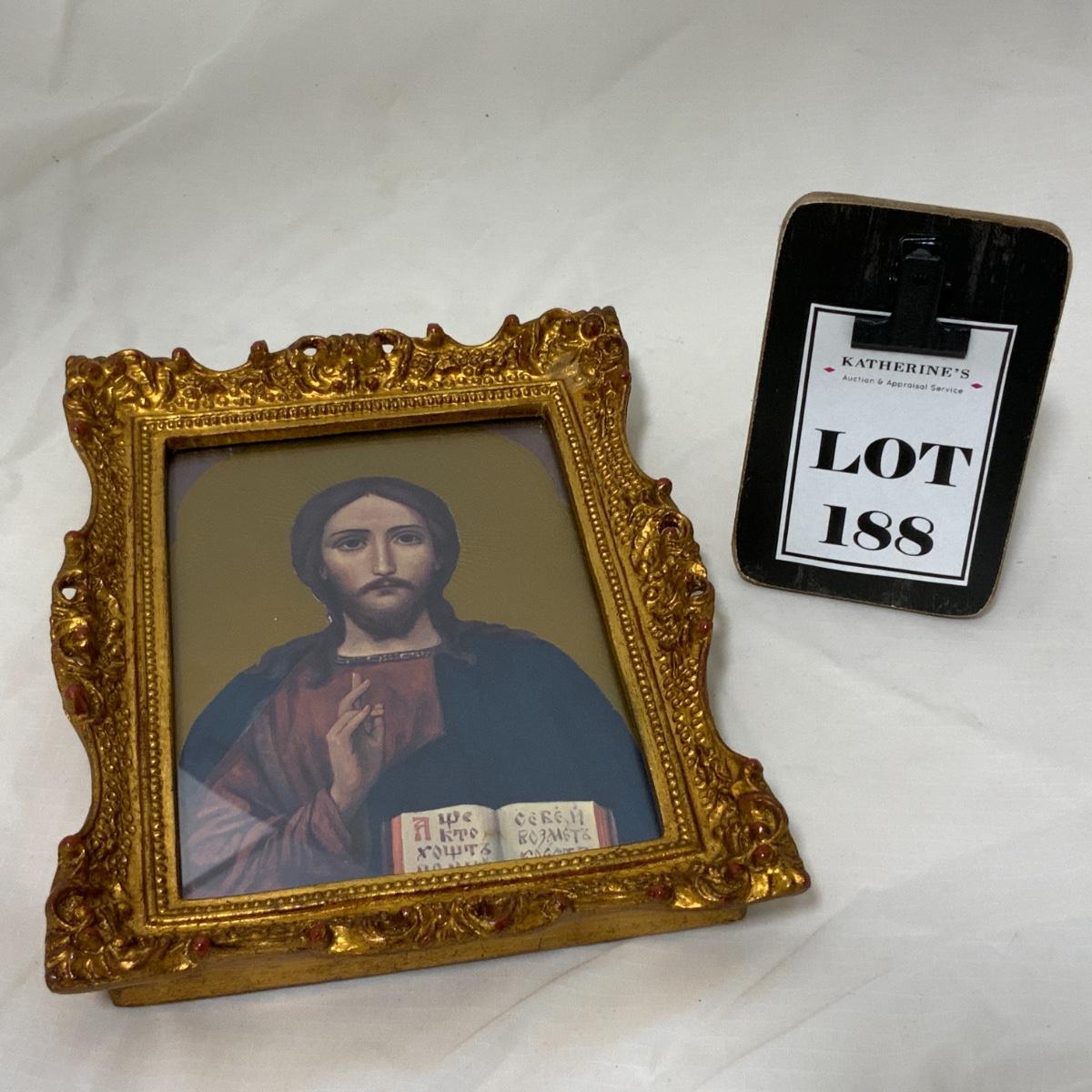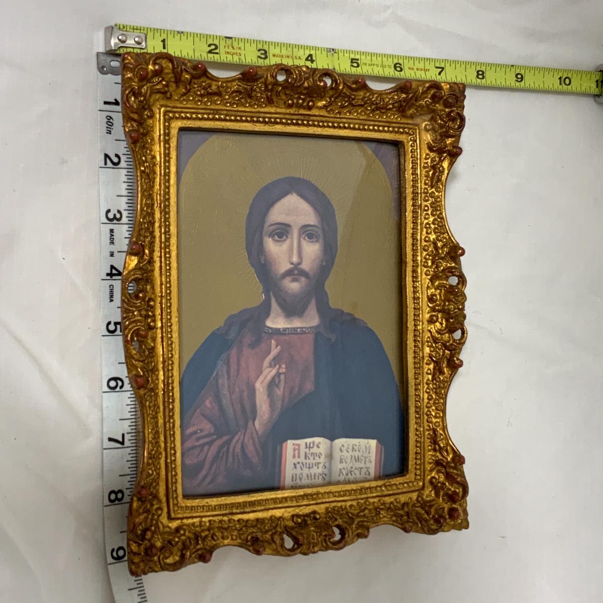 From the Estate of Peter Radovanovich: Beautifully and Elegantly framed Eastern Orthodox Style Idol of Jesus. Nice gold accenting on both the frame and the picture itself. Please see photos for details and condition. ::: Shipping is available on this lot. If you require shipping you must let us know at the close of the auction. We will coordinate with you after the item has been won. Shipping fees will include insurance up to or exceeding the value of all items being mailed. If you have any questions regarding this lot please contact the auctioneer either via this website, by direct email or by phone. PICK UP TIMES and other important information can be found in the TERMS and DESCRIPTION of the auction. Please take a look for pertinent information. Thanks!