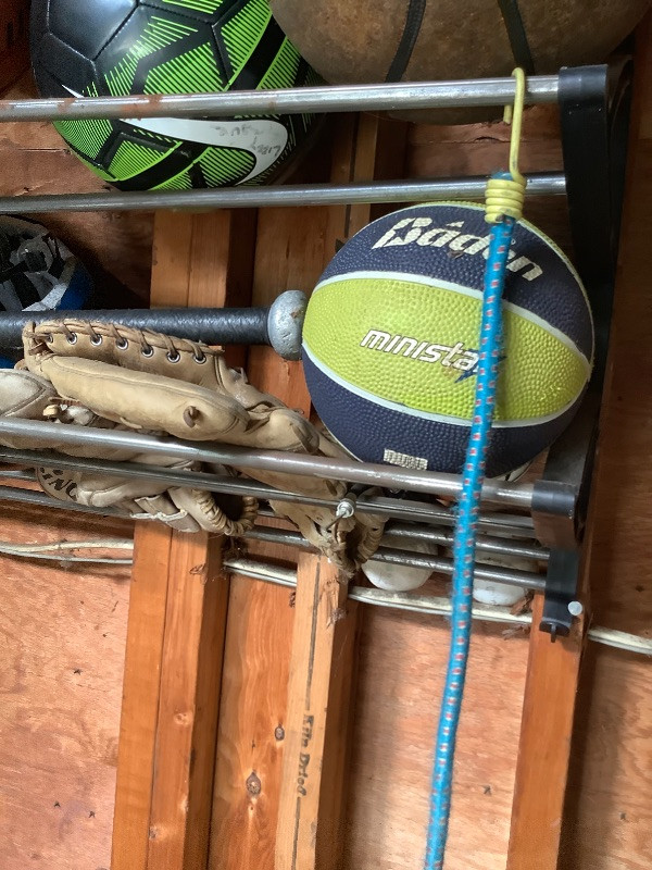 Hanging Sport Rack with Contents