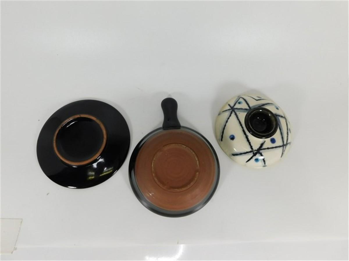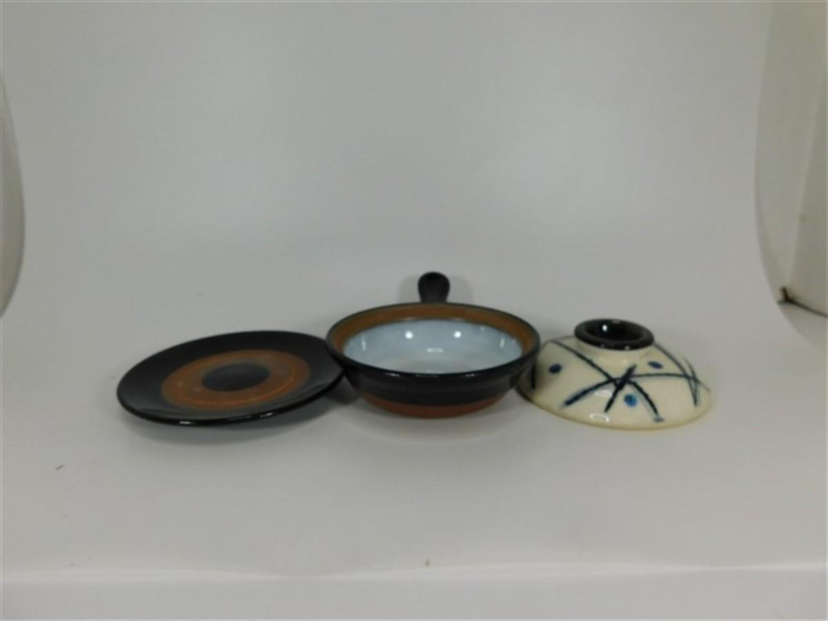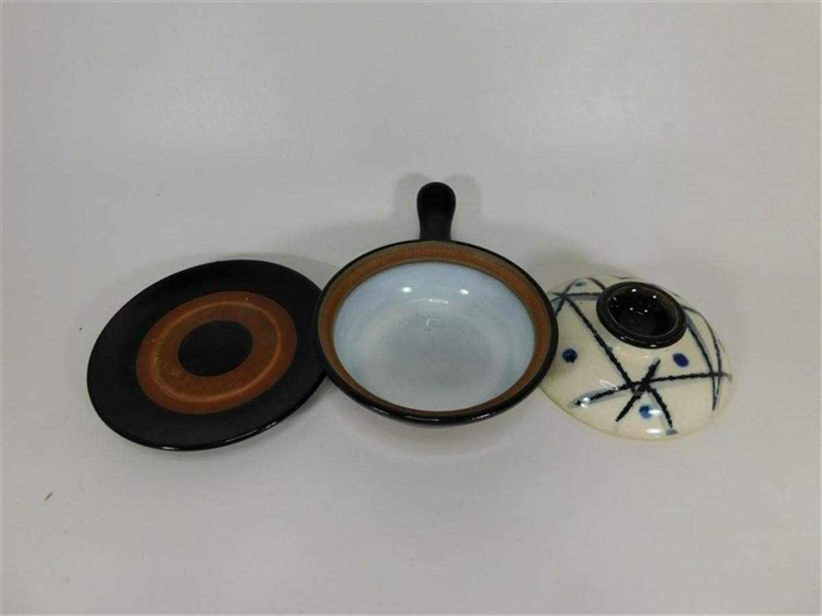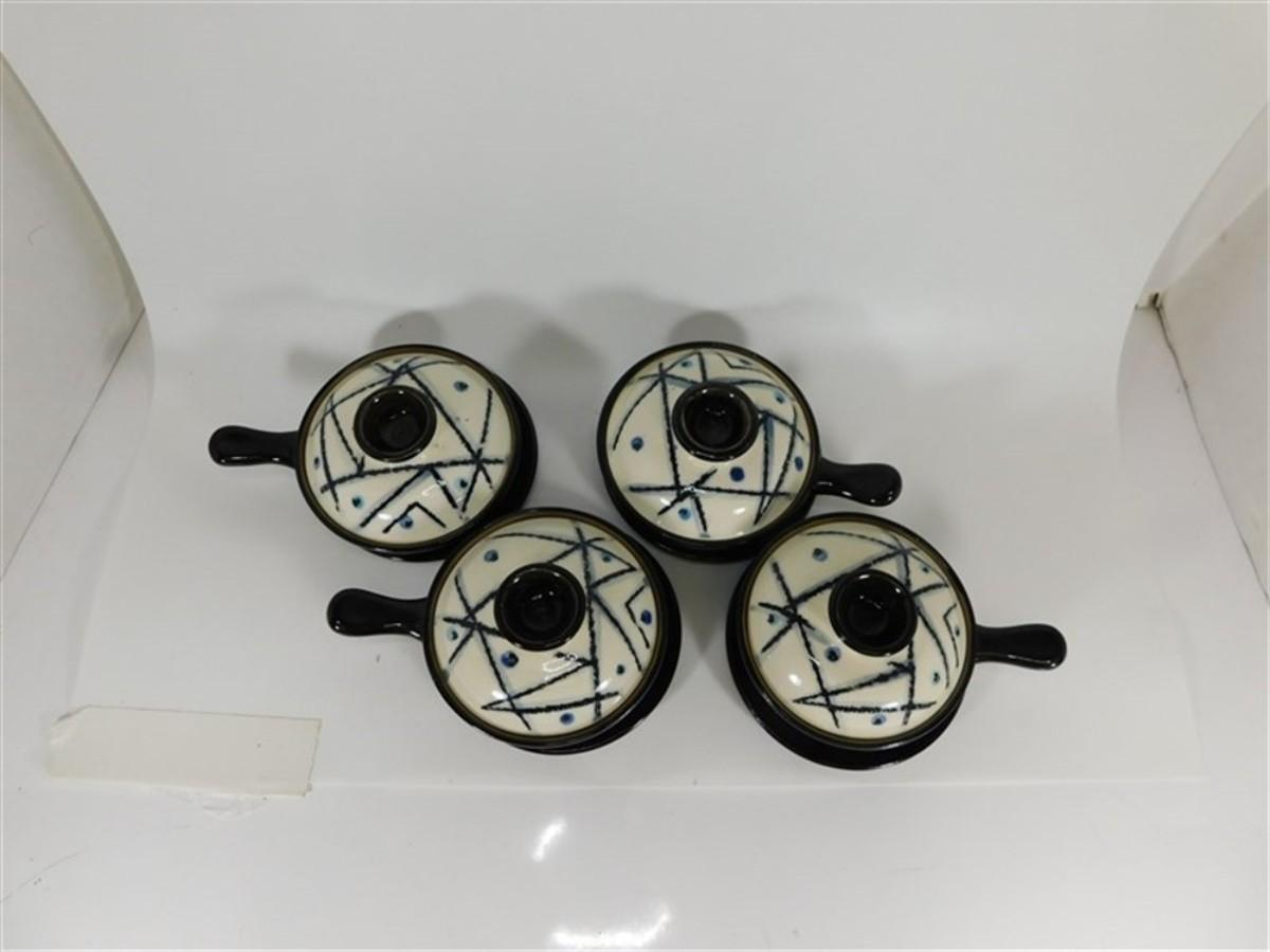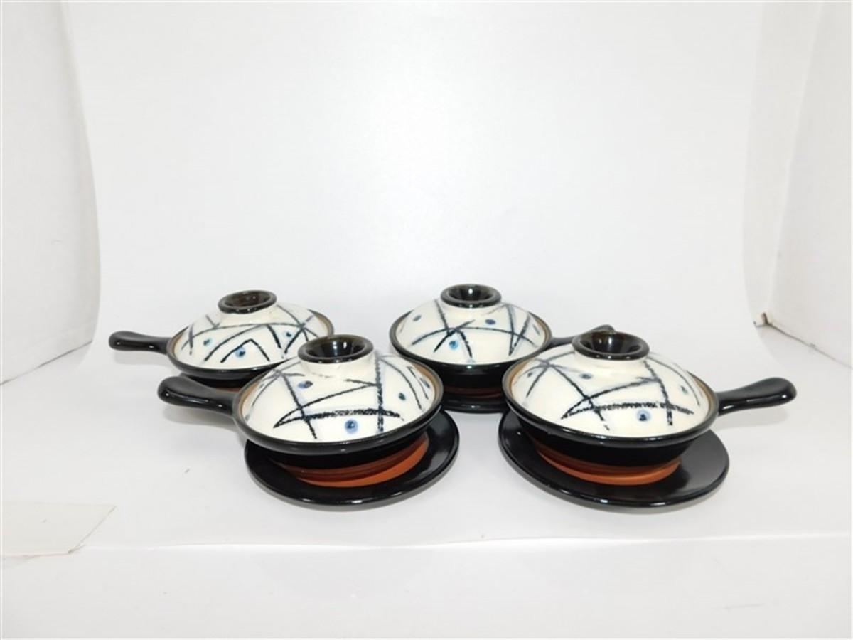 188 Lot of 4 Stoneware Lidded Ramekins with Saucer