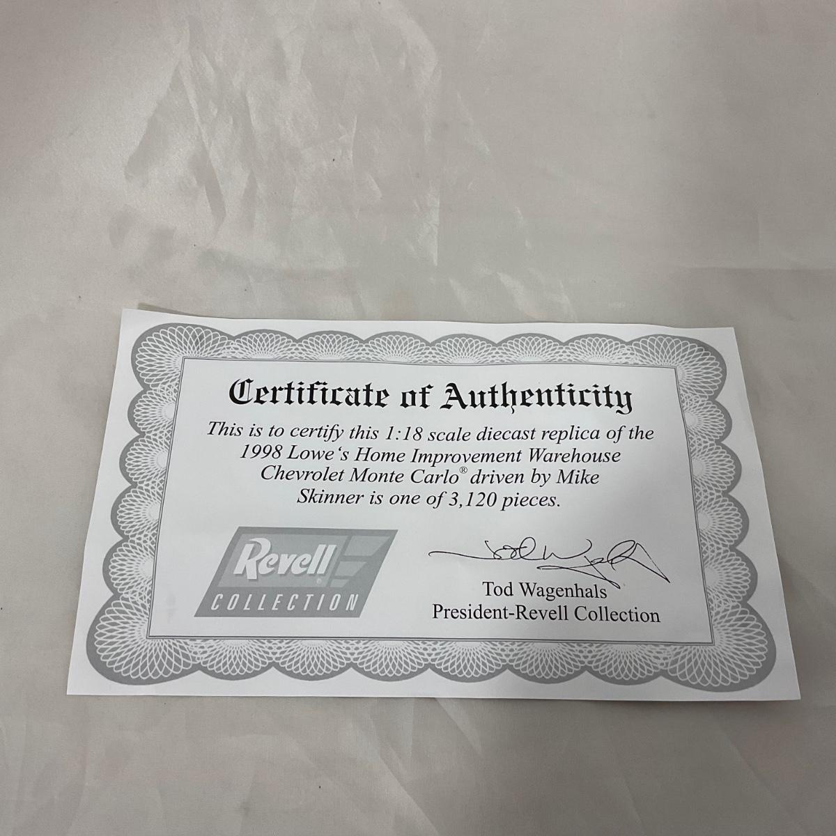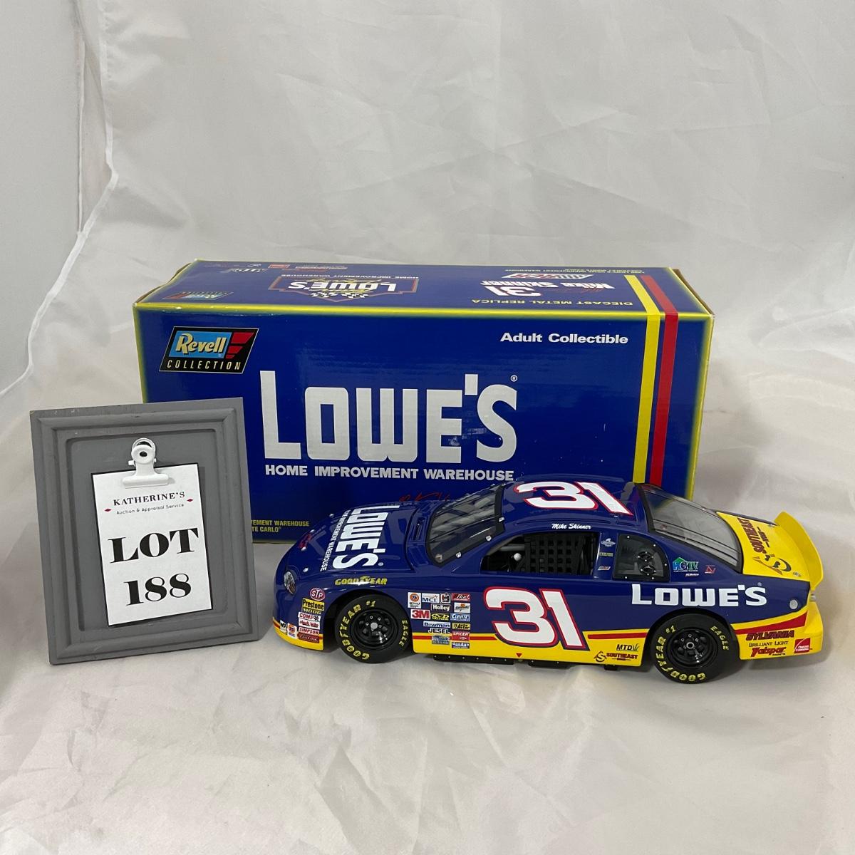 One NASCAR die cast 1:18 scale 1998 Lowes Home Improvement Warehouse Chevrolet Monte Carlo figure. Comes with a Certificate of Authenticity. Please see photos for details and condition. ::: Shipping is available on this lot. If you require shipping you must let us know at the close of the auction. We will coordinate with you after the item has been won. Shipping fees will include insurance up to or exceeding the value of all items being mailed. If you have any questions regarding this lot please contact the auctioneer either via this website, by direct email or by phone. PICK UP TIMES and other important information can be found in the TERMS and DESCRIPTION of the auction. Please take a look for pertinent information. Thanks!