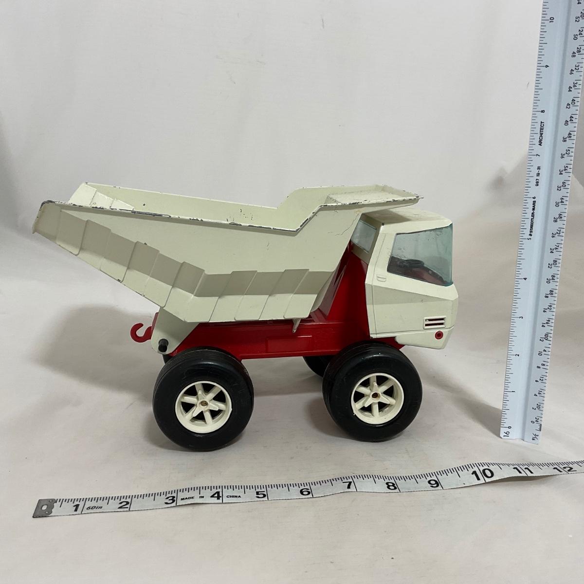 One vintage Gamma Brummi dump truck. Well loved missing paint, and well played with. Please see photos for details and condition. ::: Shipping is available on this lot. If you require shipping you must let us know at the close of the auction. We will coordinate with you after the item has been won. Shipping fees will include insurance up to or exceeding the value of all items being mailed. If you have any questions regarding this lot please contact the auctioneer either via this website, by direct email or by phone. PICK UP TIMES and other important information can be found in the TERMS and DESCRIPTION of the auction. Please take a look for pertinent information. Thanks!