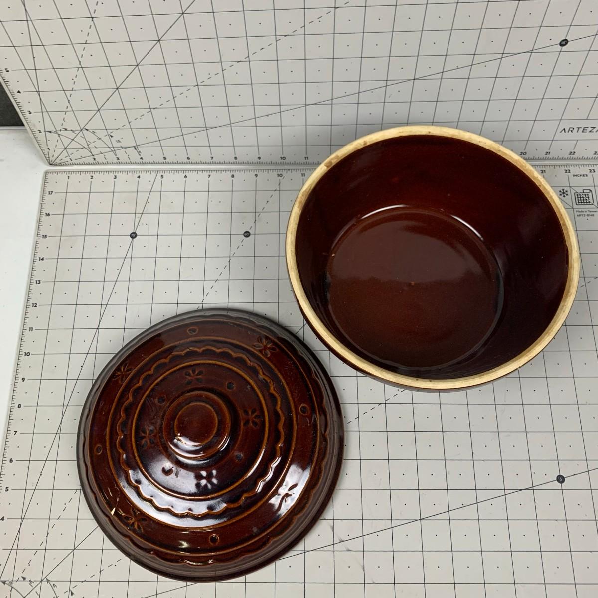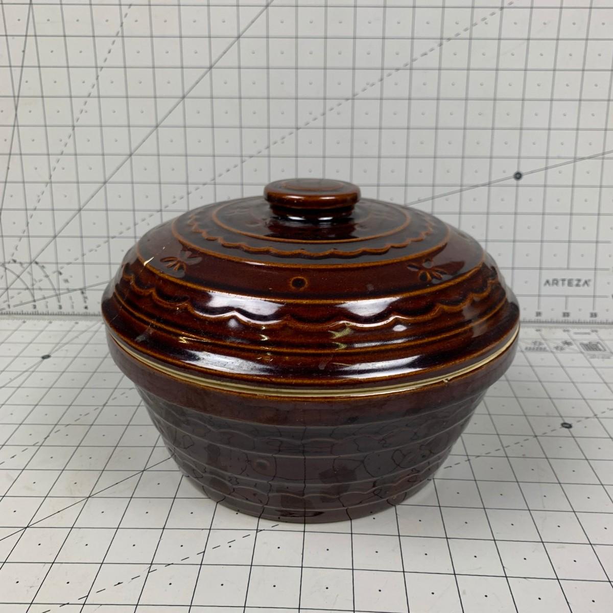 #188 Vintage Marcrest Brown Stoneware Daisy and Dot 8" Covered Casserole