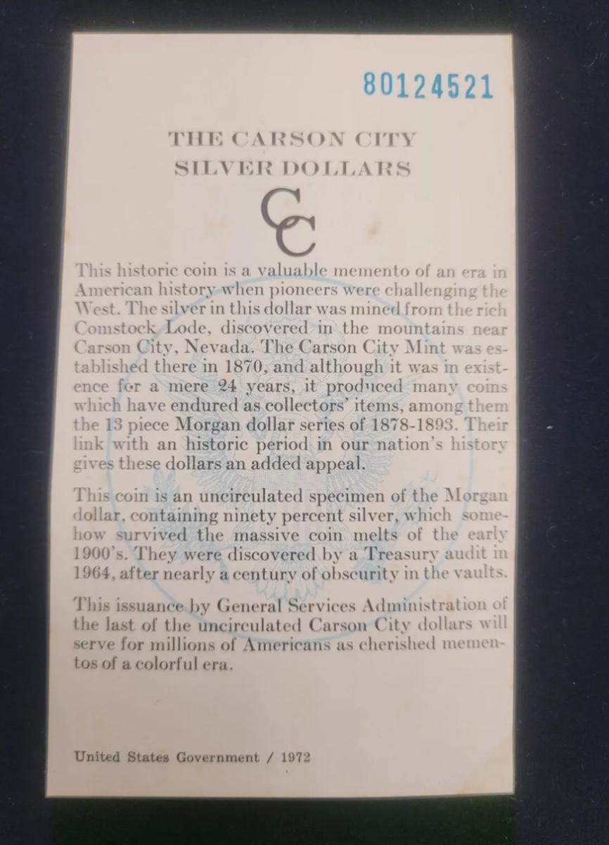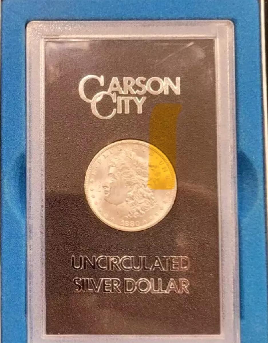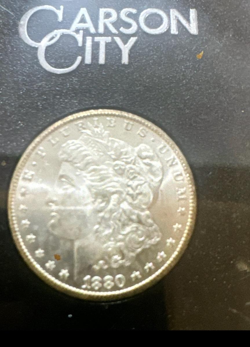 1880 Carson City Morgan in box with papers U S on 1$ Silver