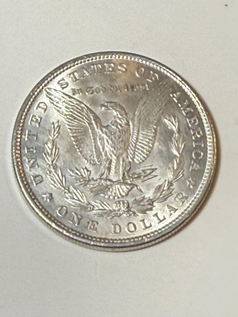 1880 UNCIRCULATED CONDITION CLEANED REVERSE MORGAN SILVER DOLLAR (COIN #7X4) AS PICTURED. $5 DOMESTIC SHIPPING.